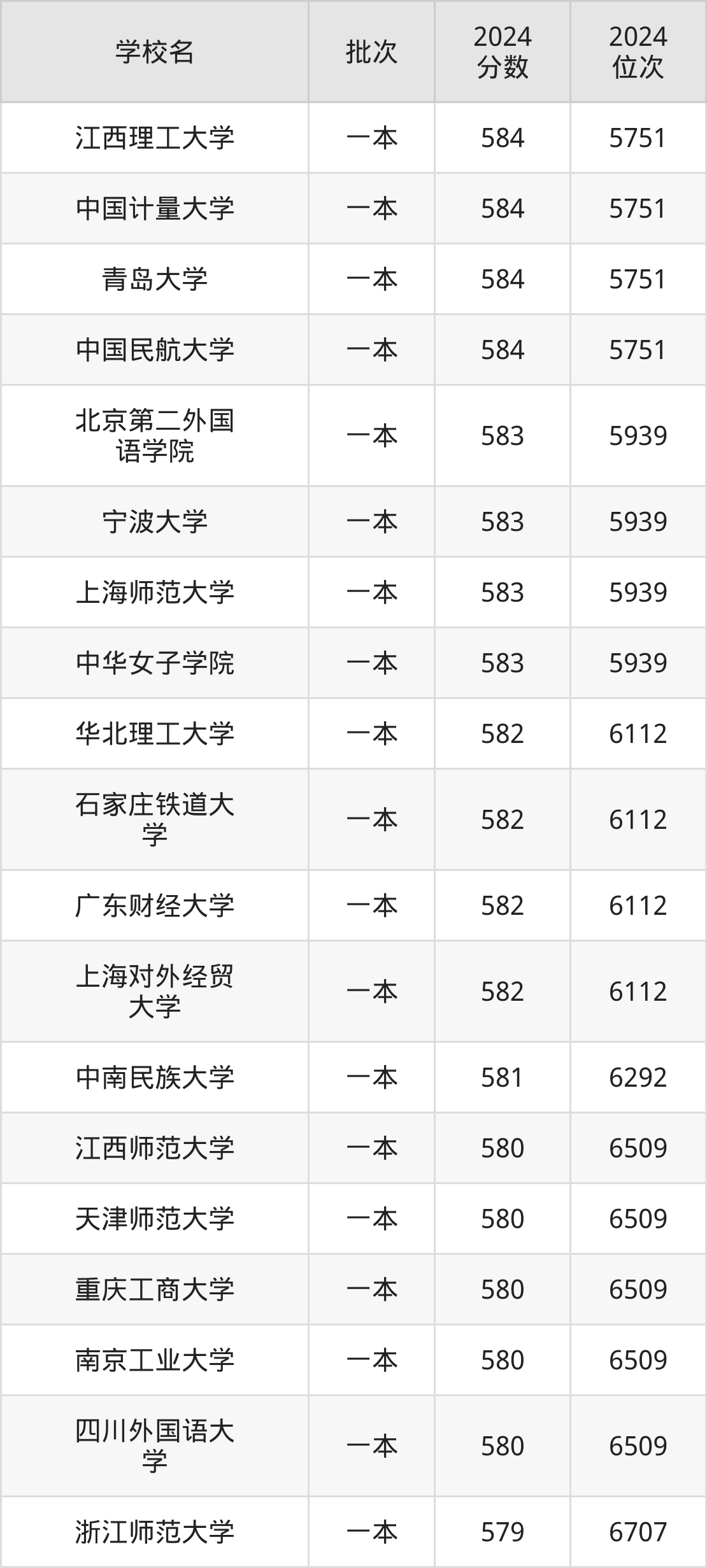 由于高考录取分数线历年波动较大,因此本文以该分数对应的位次排名为大家整理能上的大学名单。