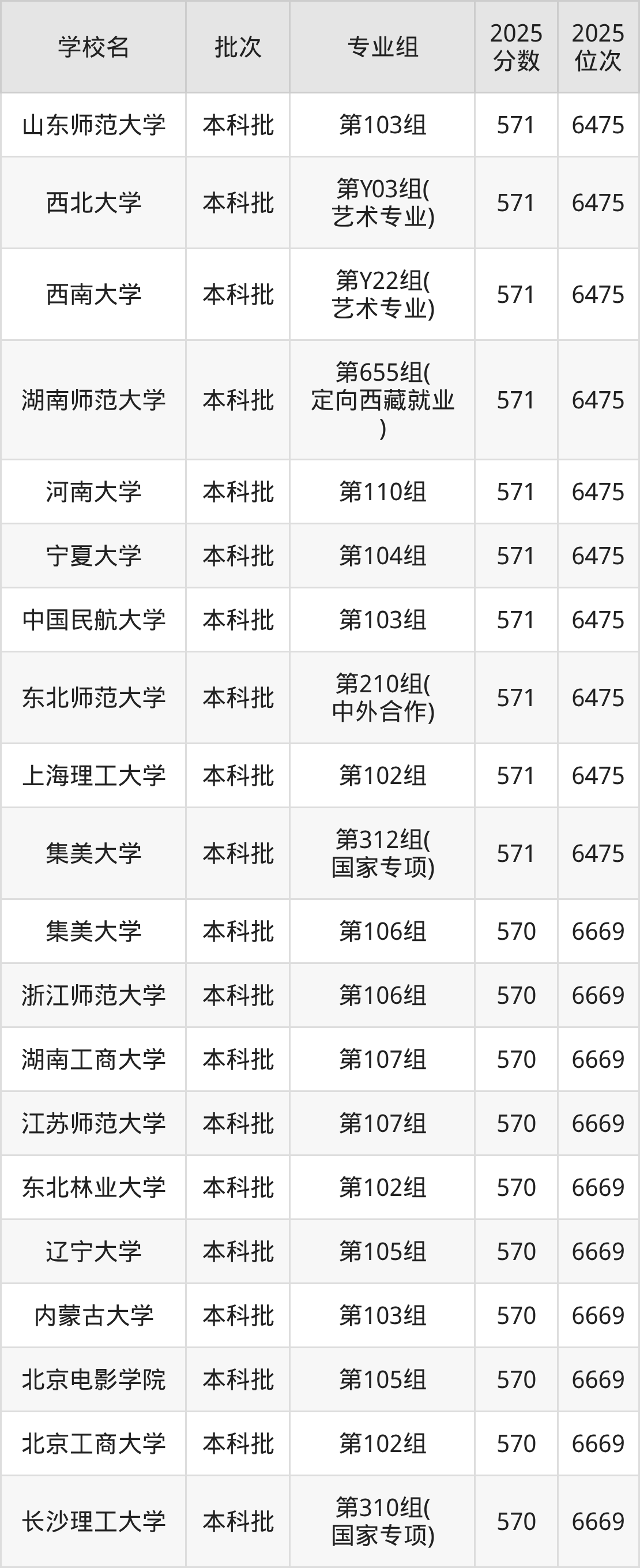 这些都是2026年高考历史类6872名~7038名考生可以报考的大学,更多学校名单如下表所示: