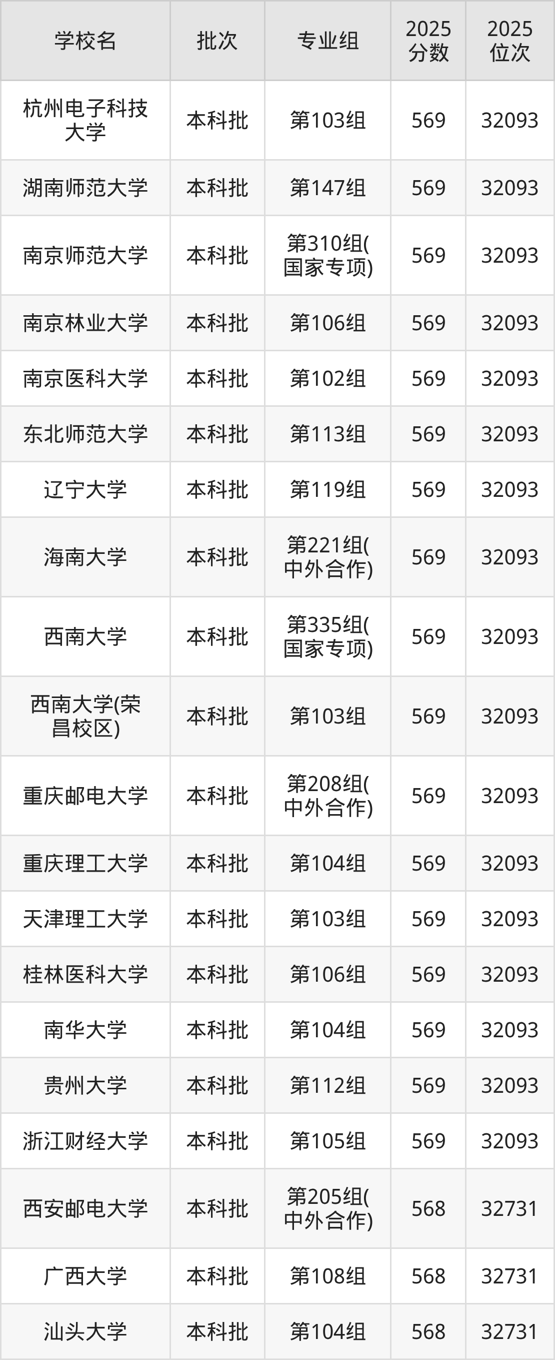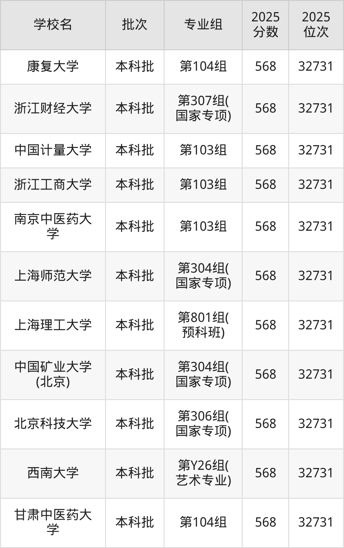 2025年湖南高考物理类568分(32094名~32731名)能上的大学有北京科技大学第306组(国家专项)、中国矿业大学(北京)第304组(国家专项)、上海理工大学第801组(预科班)、上海师范大学第304组(国家专项)等。