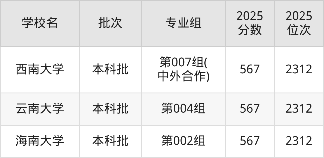 另外录取位次低于该区间(较稳妥)的有长安大学第001组(1933名)、厦门大学第004组(马来西亚分校)(1933名)等;录取位次高于该区间(可冲)的有西北大学第003组(1820名)、西北大学第002组(1820名)等。