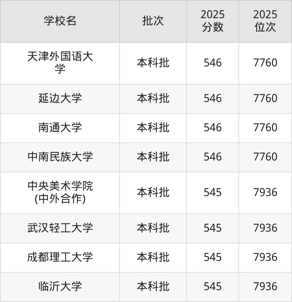 这些都是2026年高考历史类7426名~7586名考生可以报考的大学,更多学校名单如下表所示: