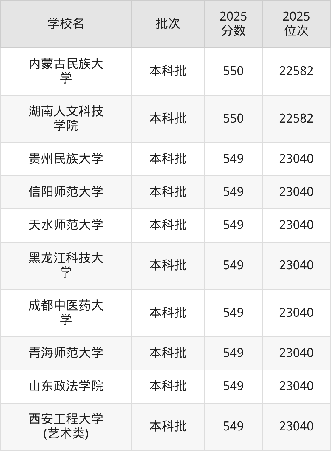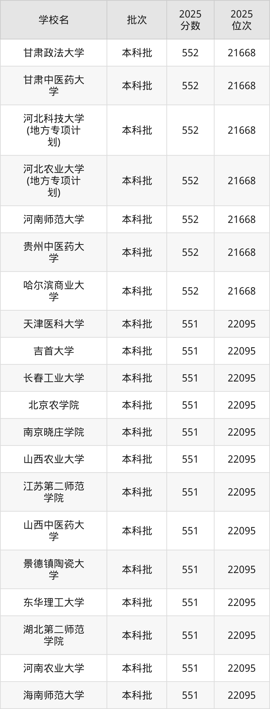 这些都是2026年高考历史类22096名~22582名考生可以报考的大学,更多学校名单如下表所示: