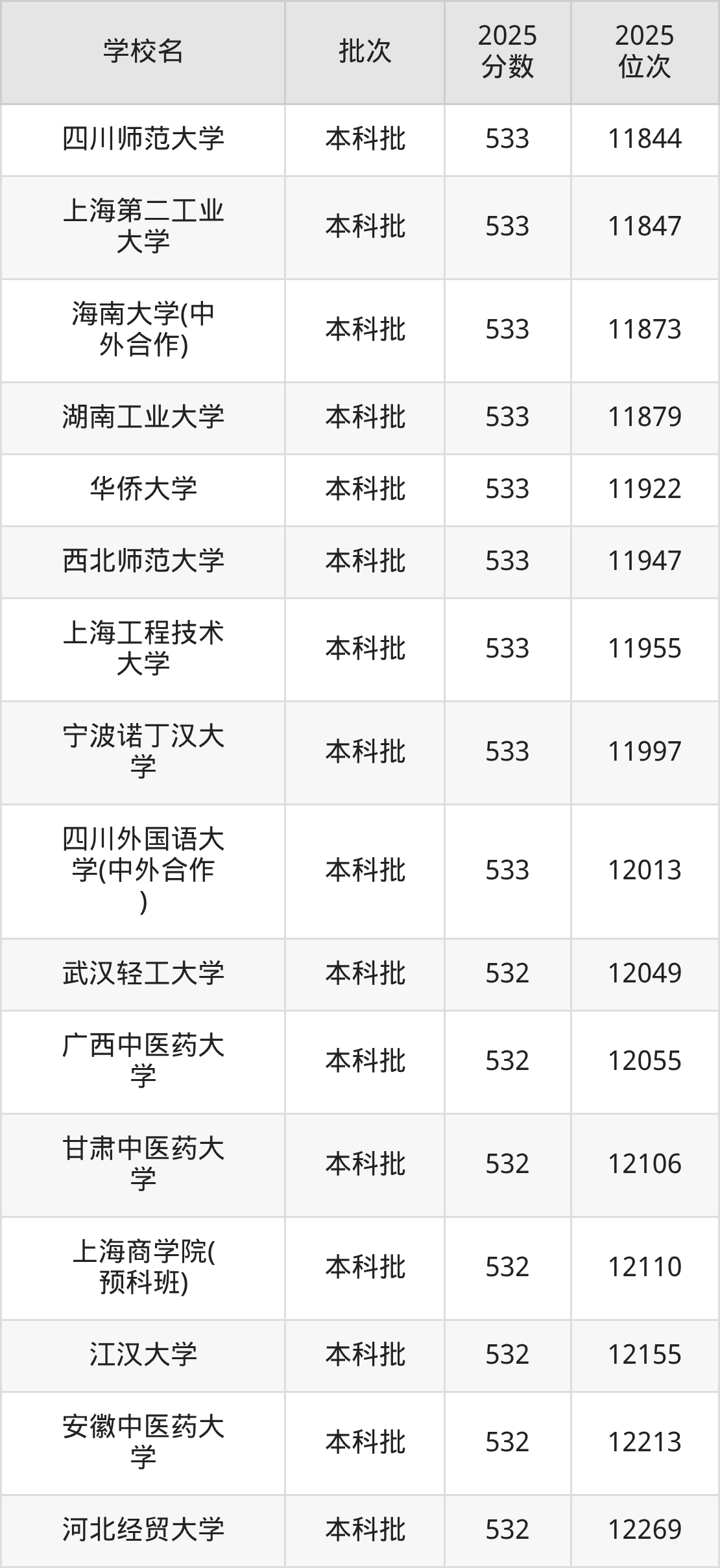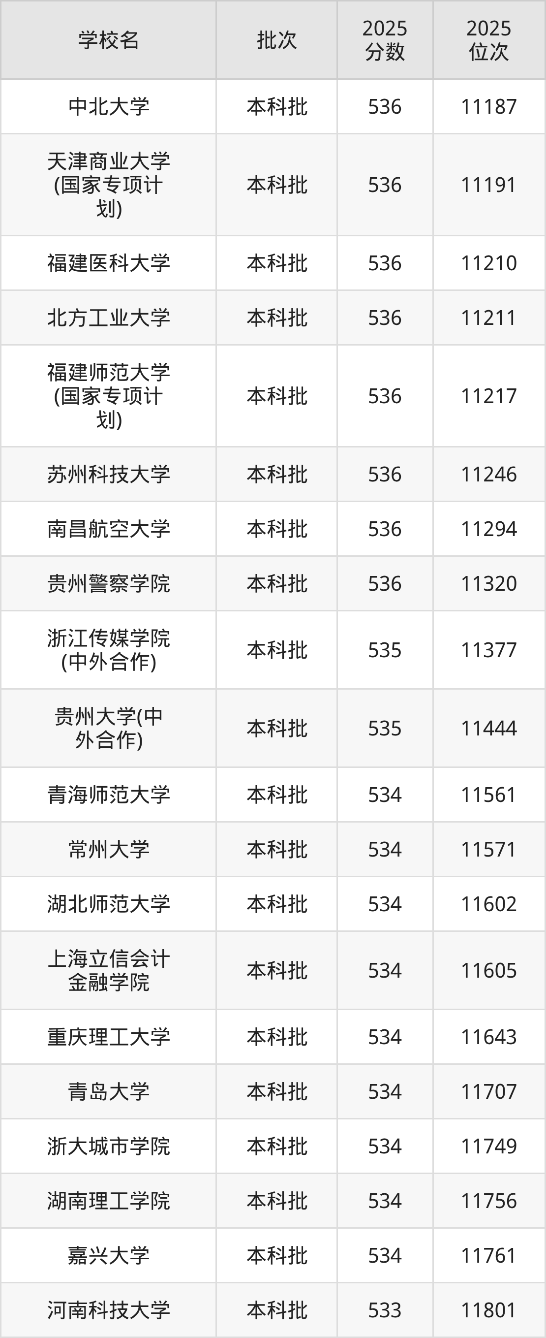 另外录取位次低于该区间(较稳妥)的有河南科技大学(11801名)、四川师范大学(11844名)等;录取位次高于该区间(可冲)的有贵州大学(中外合作)(11444名)、浙江传媒学院(中外合作)(11377名)等。