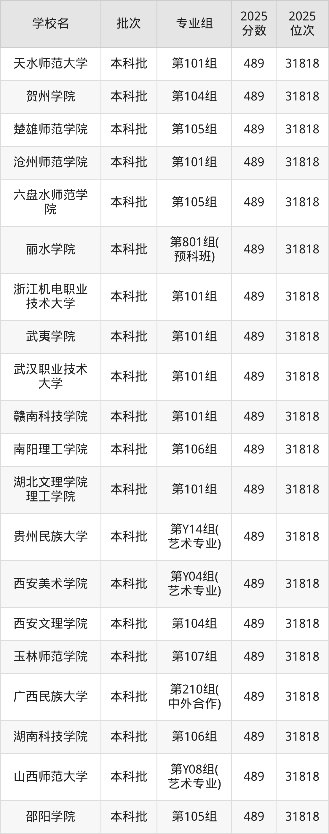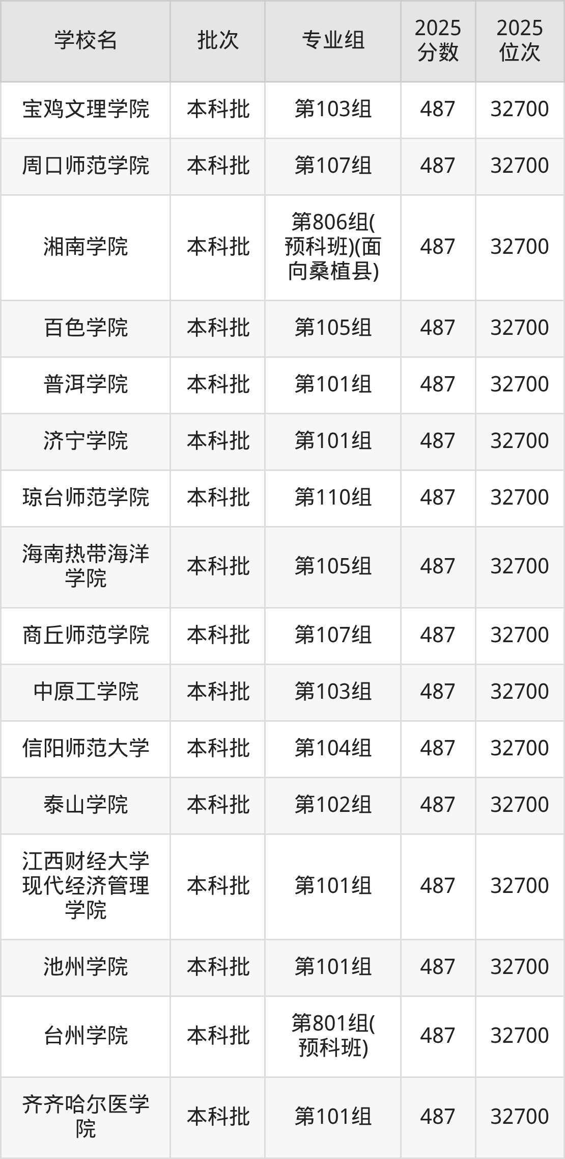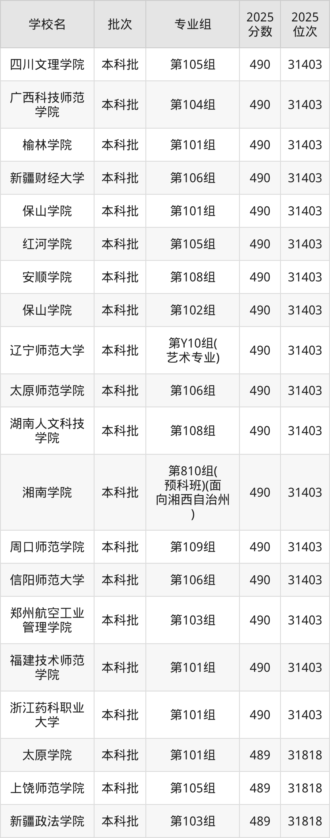 这些都是2026年高考历史类31819名~32285名考生可以报考的大学,更多学校名单如下表所示: