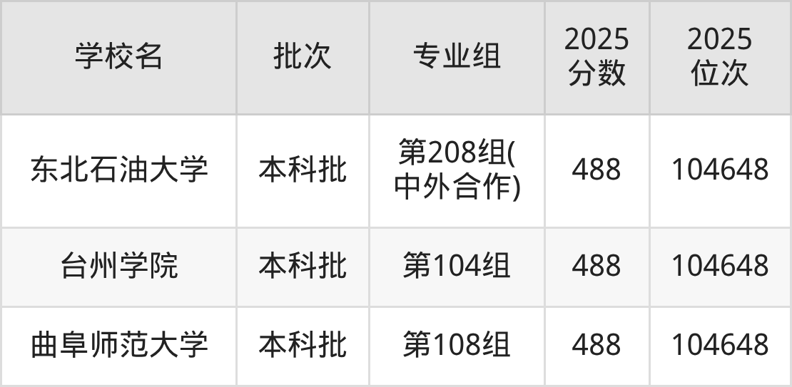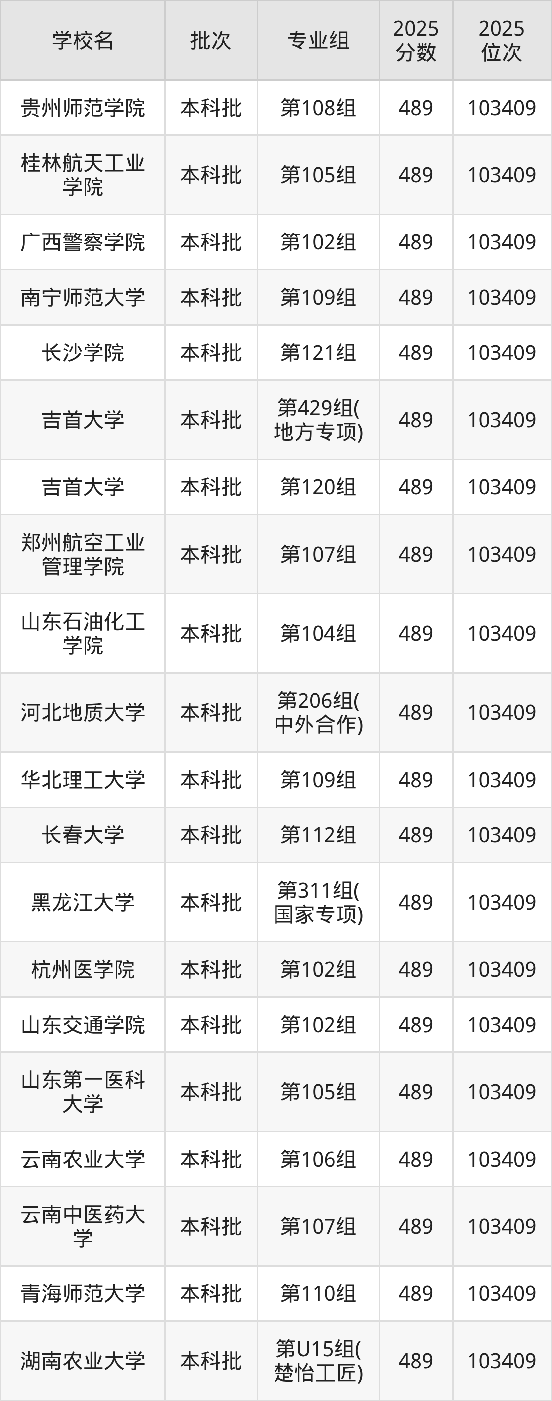 这些都是2026年高考物理类103410名~104648名考生可以报考的大学,更多学校名单如下表所示: