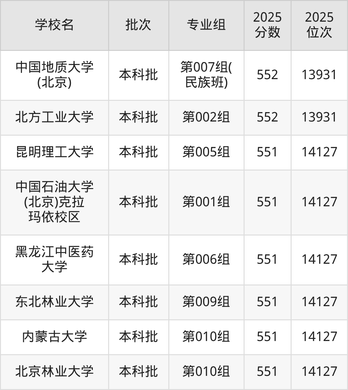 另外录取位次低于该区间(较稳妥)的有中国地质大学(北京)第007组(民族班)(13931名)、中北大学第005组(13931名)等;录取位次高于该区间(可冲)的有四川师范大学第005组(13530名)、中国矿业大学(北京)第004组(13530名)等。