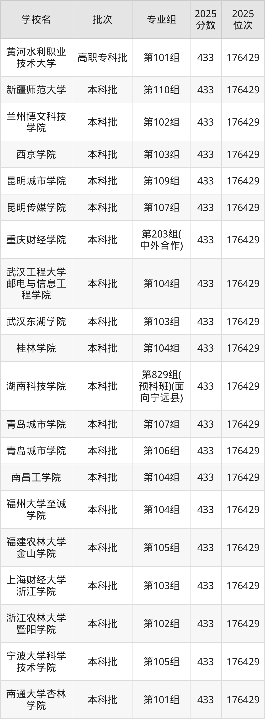 这些都是2026年高考物理类176430名~177734名考生可以报考的大学,更多学校名单如下表所示: