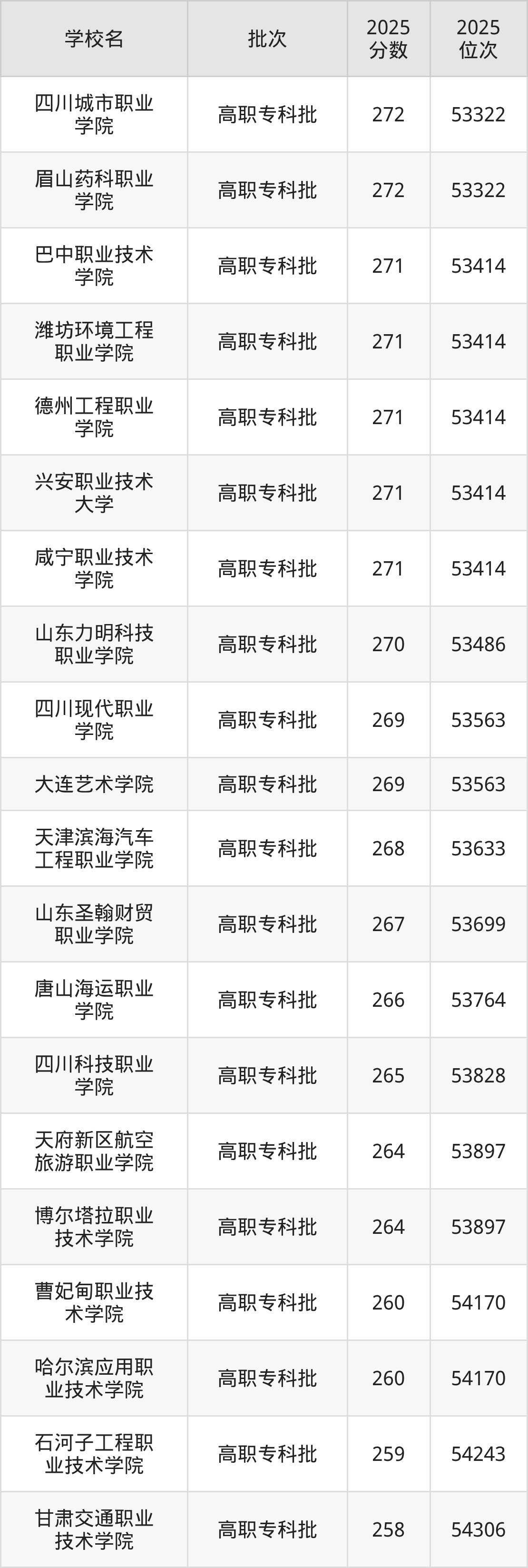 另外录取位次低于该区间(较稳妥)的有博尔塔拉职业技术学院(53897名)、天府新区航空旅游职业学院(53897名)等;录取位次高于该区间(可冲)的有唐山海运职业学院(53764名)、山东圣翰财贸职业学院(53699名)等。