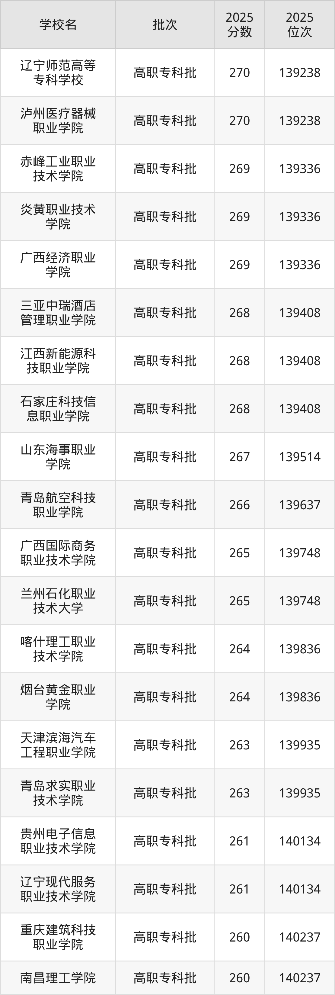 2025年辽宁高考物理类265分(139638名~139748名)能上的大学有广西国际商务职业技术学院、兰州石化职业技术大学。