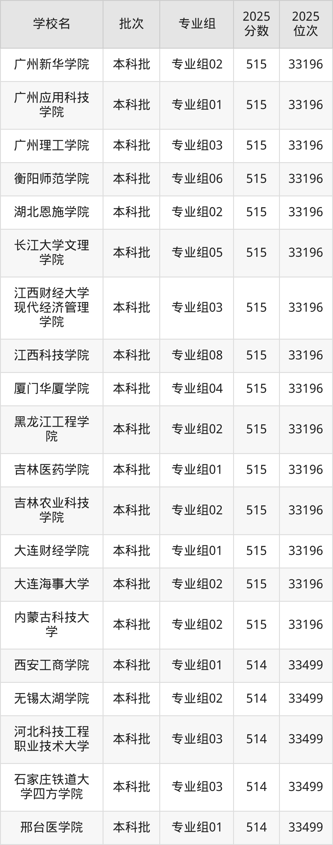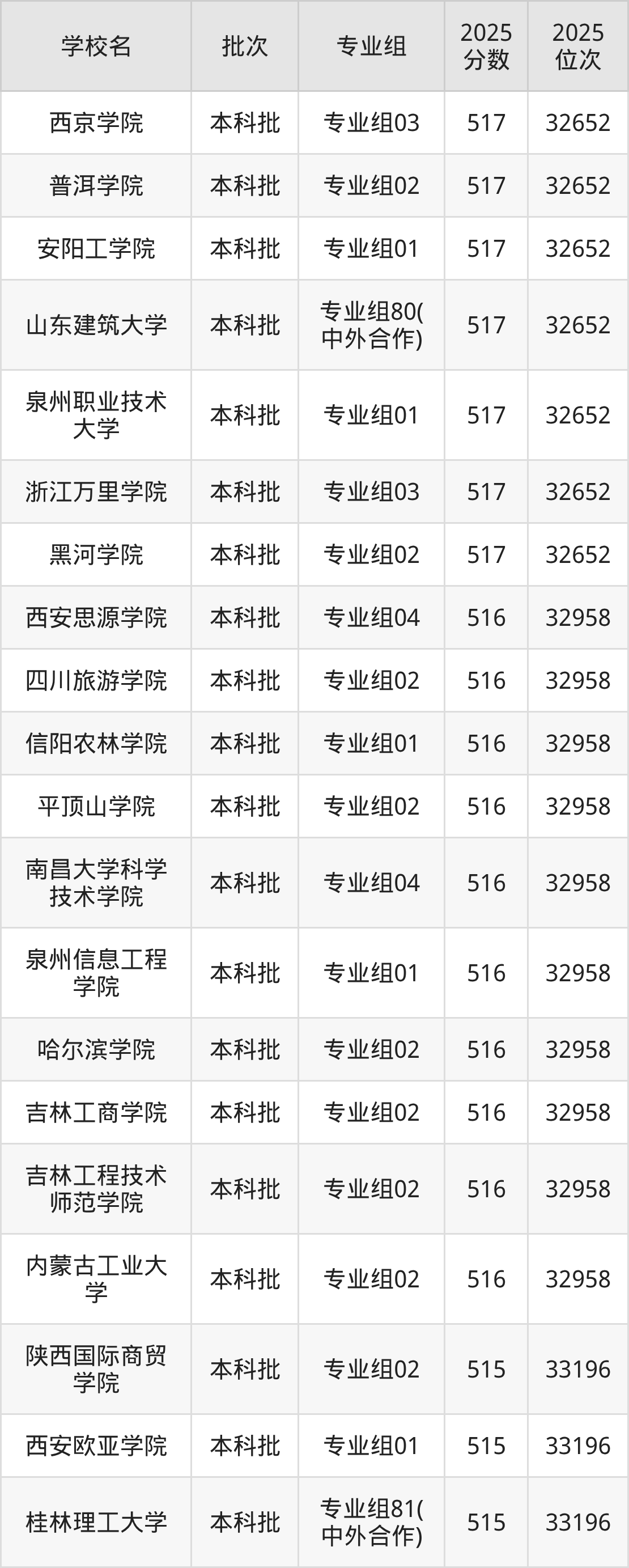 这些都是2026年高考32959名~33196名考生可以报考的大学,更多学校名单如下表所示: