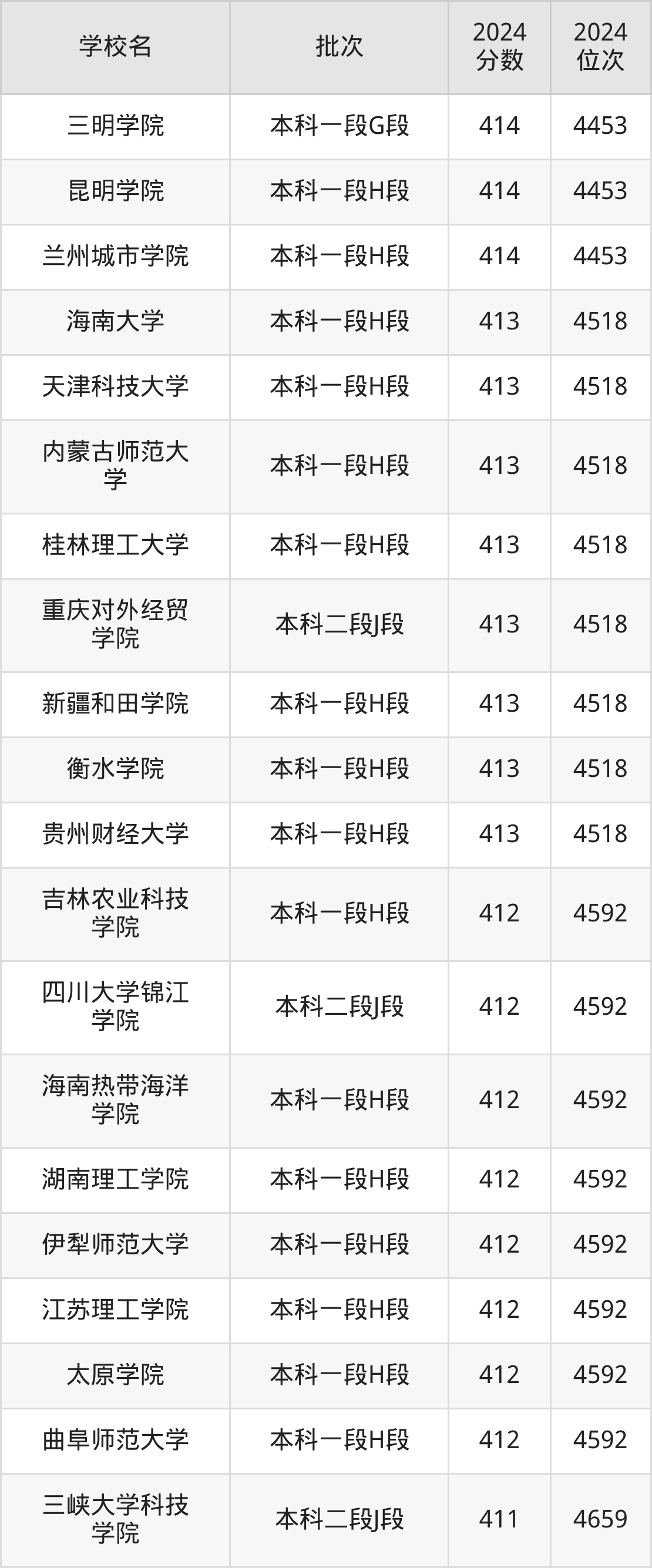 这些都是2025年高考理科8472名~8588名考生可以报考的大学,更多学校名单如下表所示: