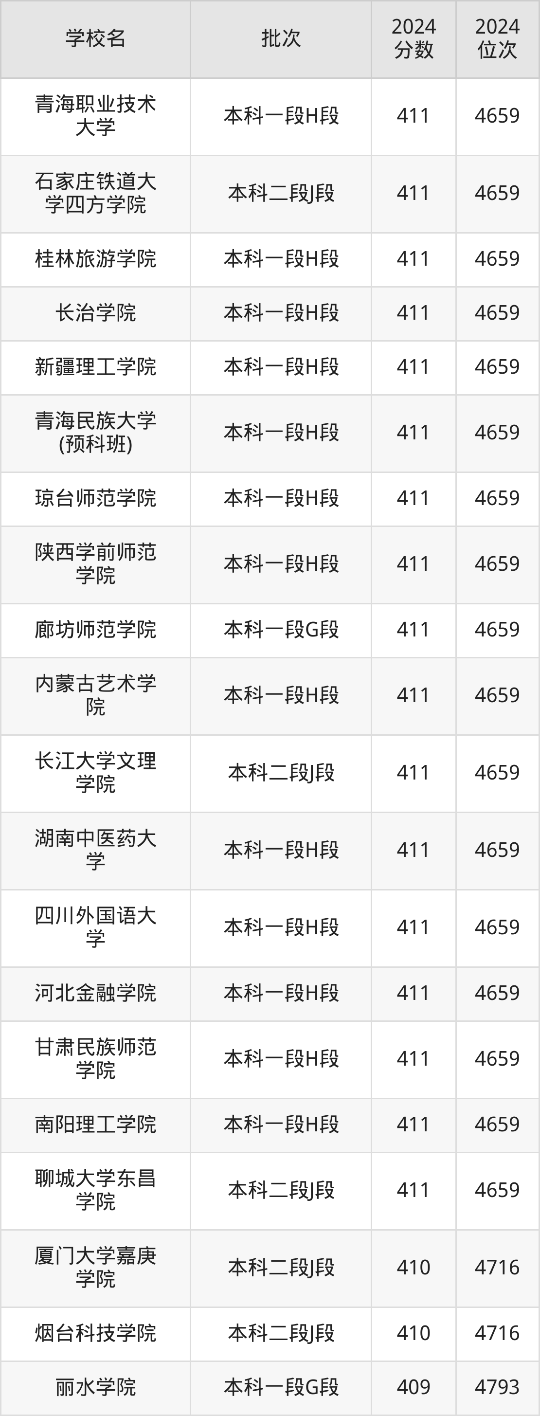 这些都是2025年高考文科4849名~4911名考生可以报考的大学,更多学校名单如下表所示: