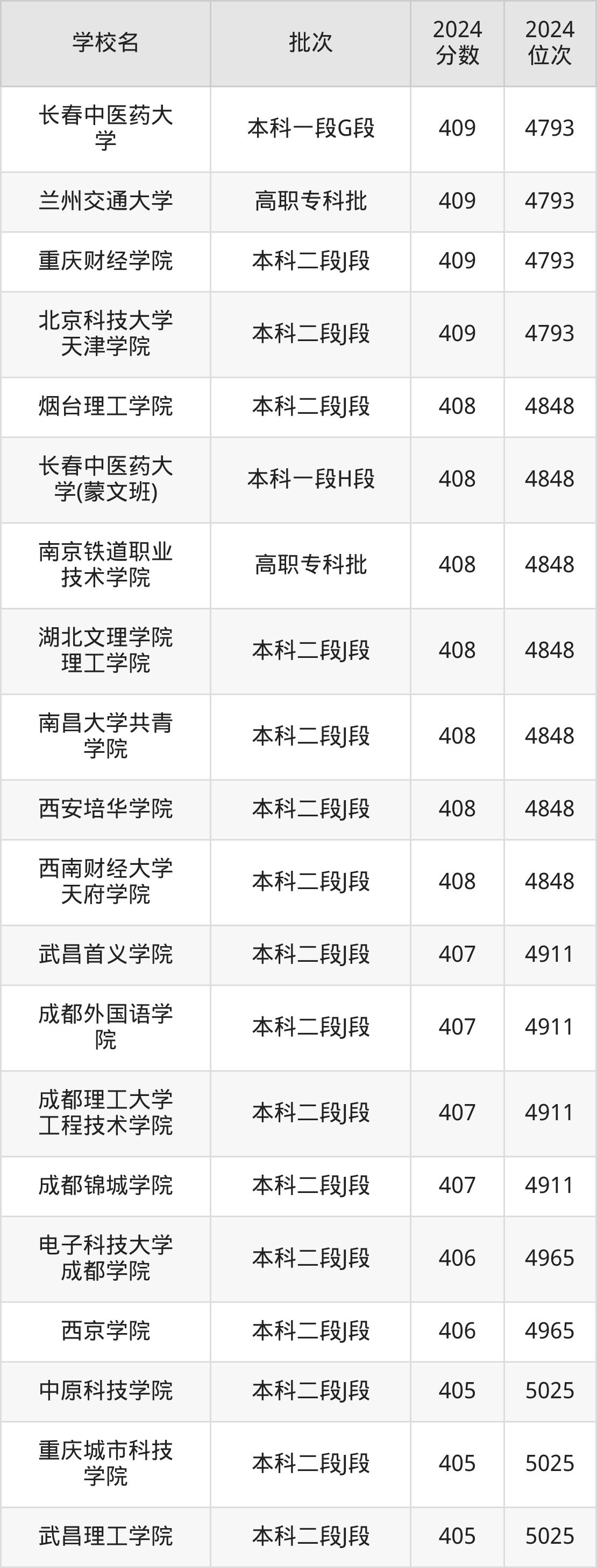 2024年青海高考文科407分(4849名~4911名)能上的大学有武昌首义学院、成都锦城学院、成都外国语学院、成都理工大学工程技术学院。