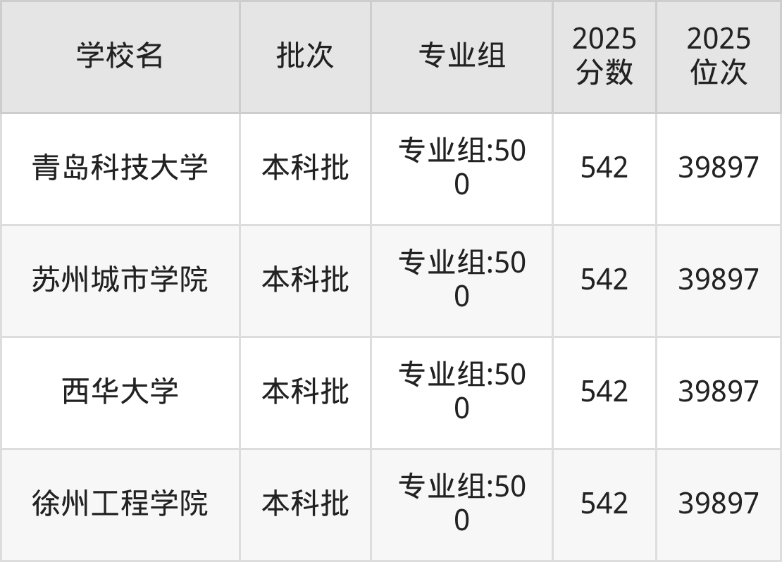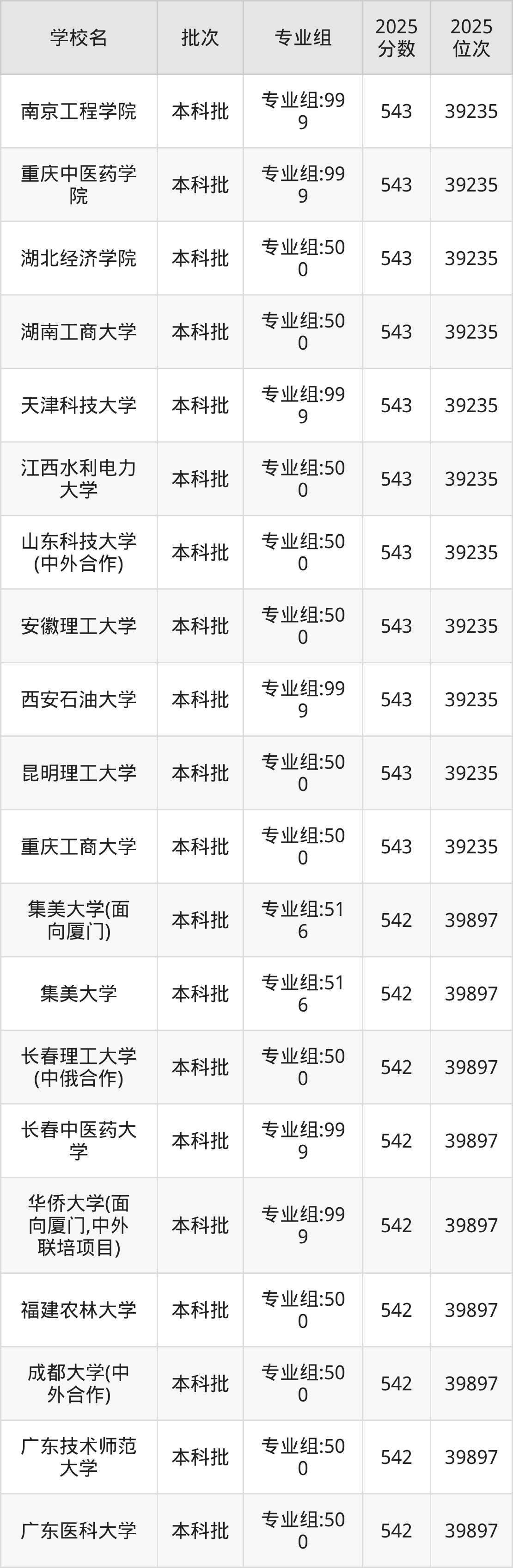 2025年福建高考物理类542分(39236名~39897名)能上的大学有福建农林大学专业组:500、华侨大学(面向厦门,中外联培项目)专业组:999、集美大学专业组:516、集美大学(面向厦门)专业组:516等。