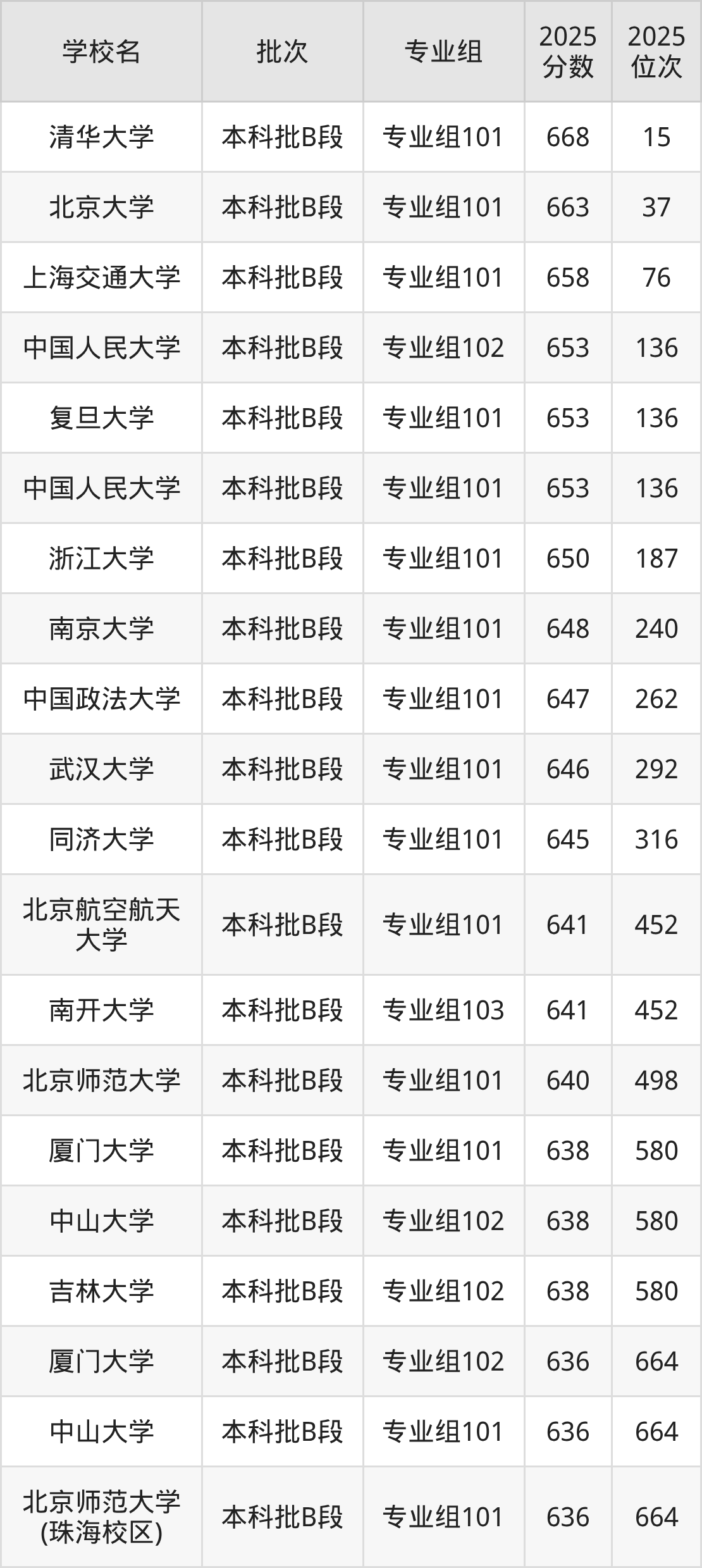 另外录取位次低于该区间(较稳妥)的有南京大学专业组101(240名)、中国政法大学专业组101(262名)等;录取位次高于该区间(可冲)的有中国人民大学专业组101(136名)、复旦大学专业组101(136名)等。