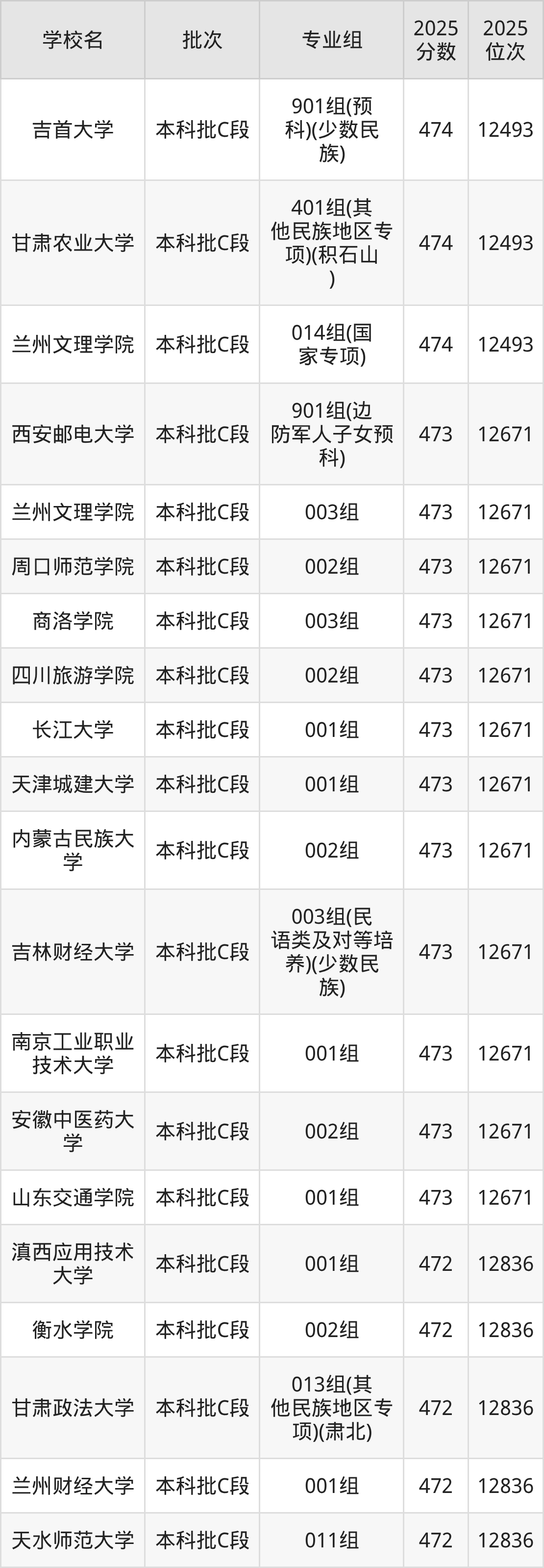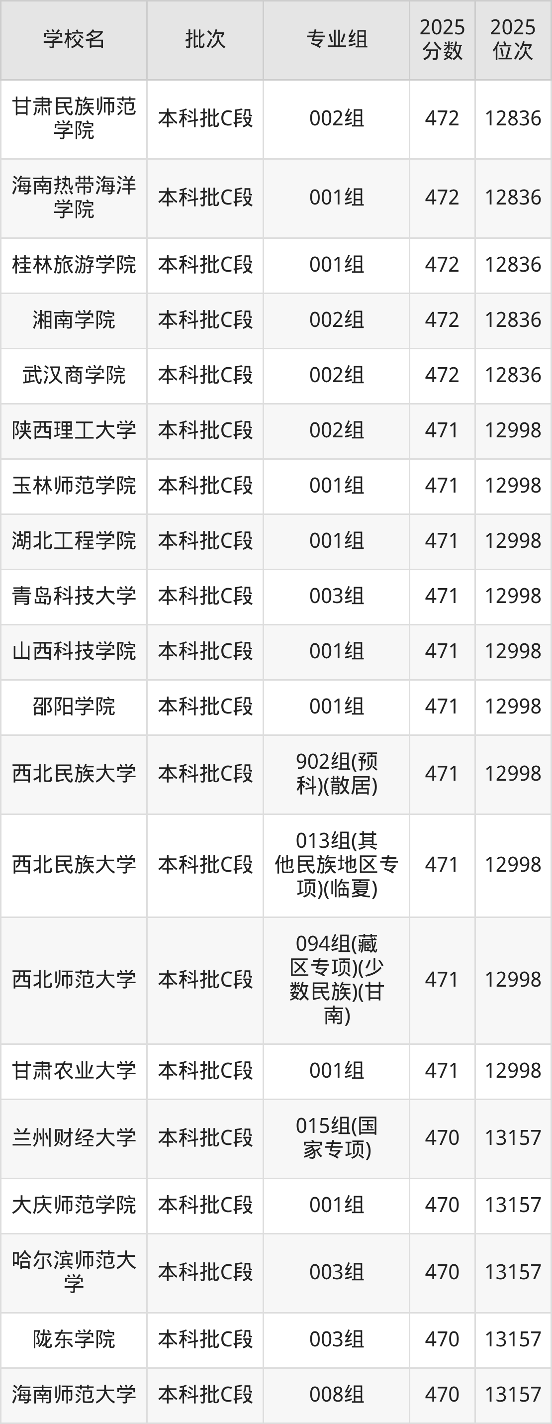 这些都是2026年高考历史类12837名~12998名考生可以报考的大学,更多学校名单如下表所示: