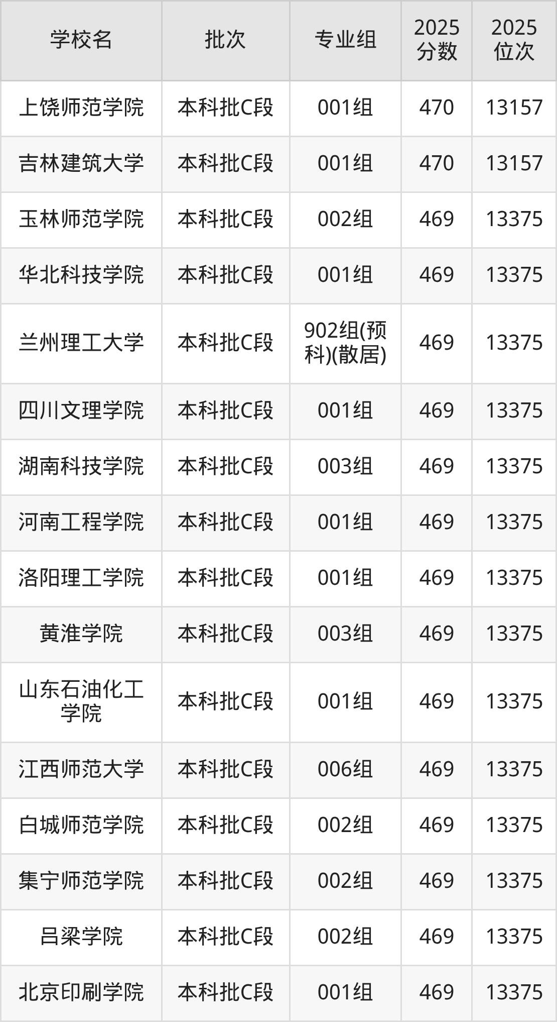 2025年甘肃高考历史类471分(12837名~12998名)能上的大学有山西科技学院001组、青岛科技大学003组、湖北工程学院001组、邵阳学院001组等。