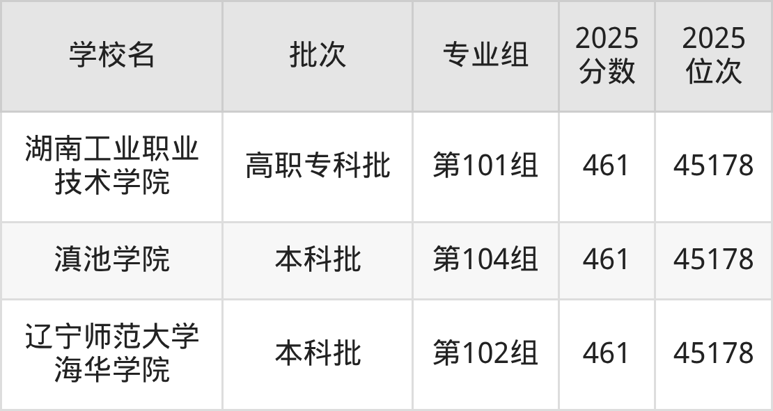 2025年湖南高考历史类461分(44698名~45178名)能上的大学有辽宁师范大学海华学院第102组、宁波财经学院第102组、仰恩大学第101组、湖南科技学院第811组(预科班)(面向沅陵县)等。