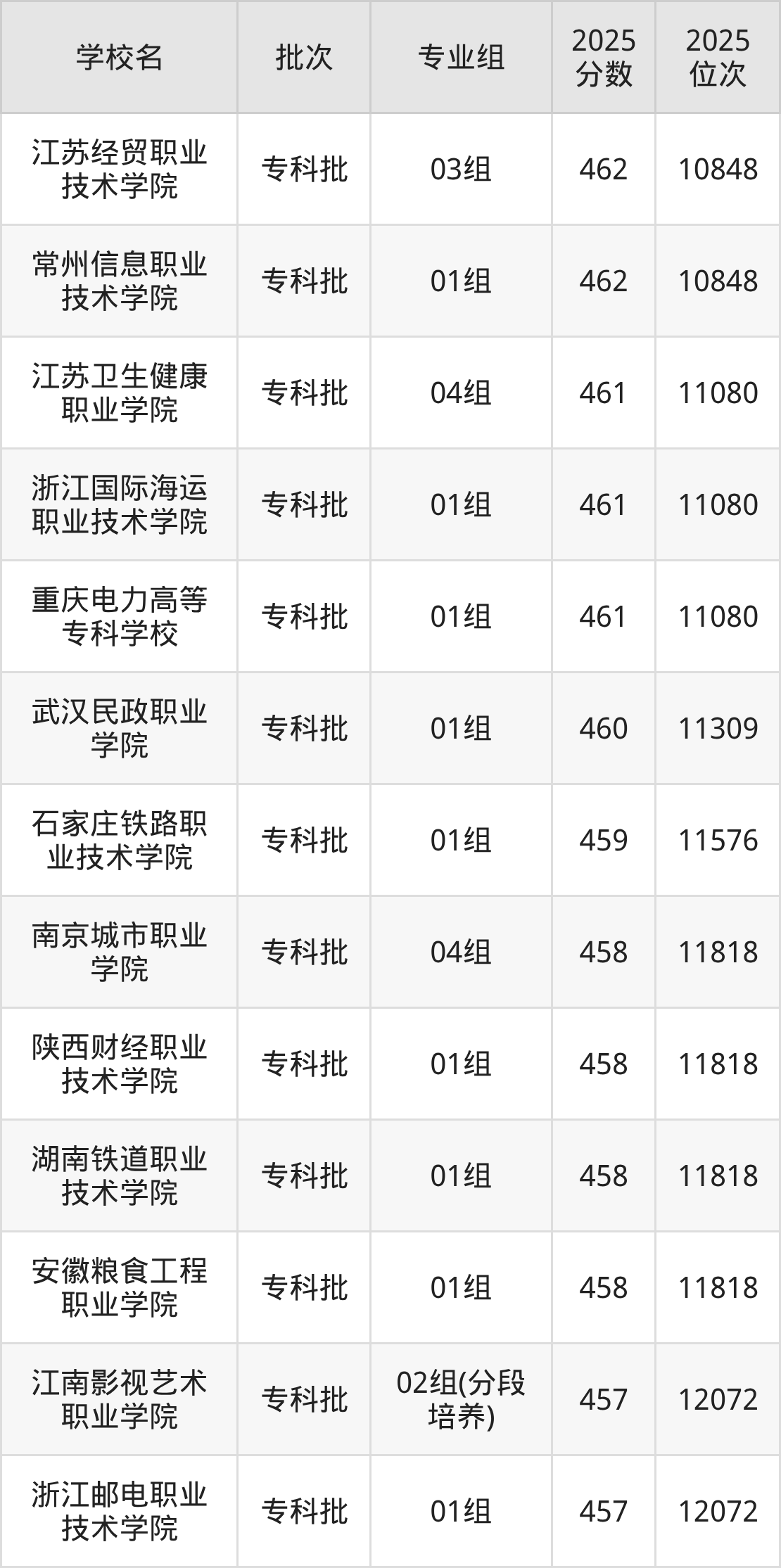 2025年江苏高考历史类459分(11310名~11576名)能上的大学有石家庄铁路职业技术学院01组。
