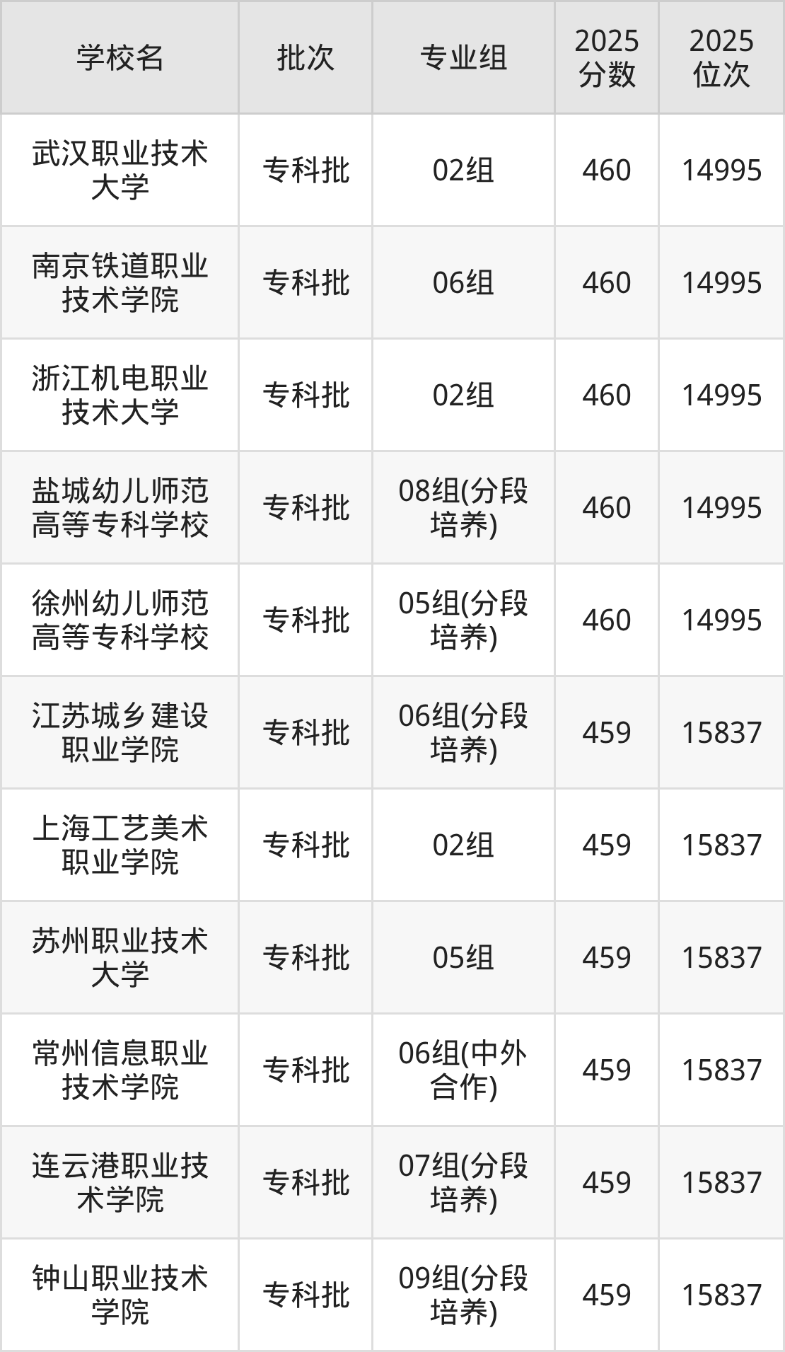 2025年江苏高考物理类459分(14996名~15837名)能上的大学有常州信息职业技术学院06组(中外合作)、江苏城乡建设职业学院06组(分段培养)、苏州职业技术大学05组、连云港职业技术学院07组(分段培养)等。