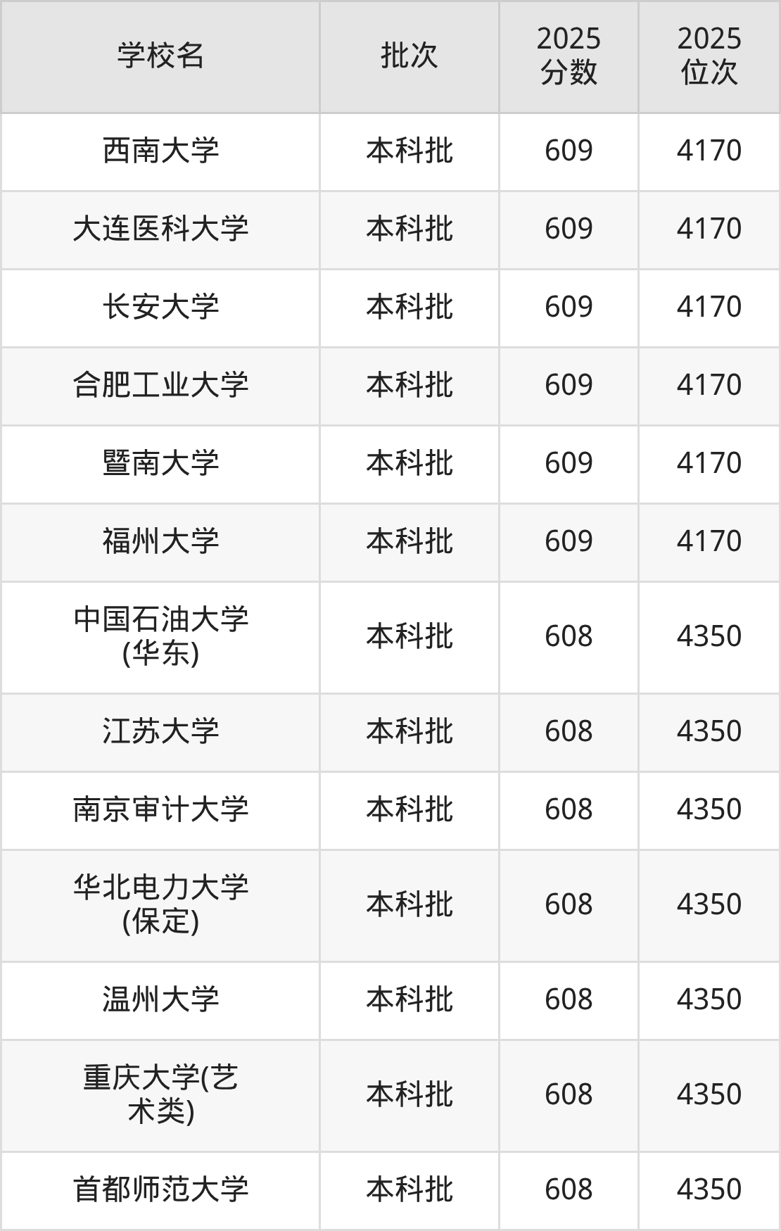 这些都是2026年高考历史类3837名~4008名考生可以报考的大学,更多学校名单如下表所示:
