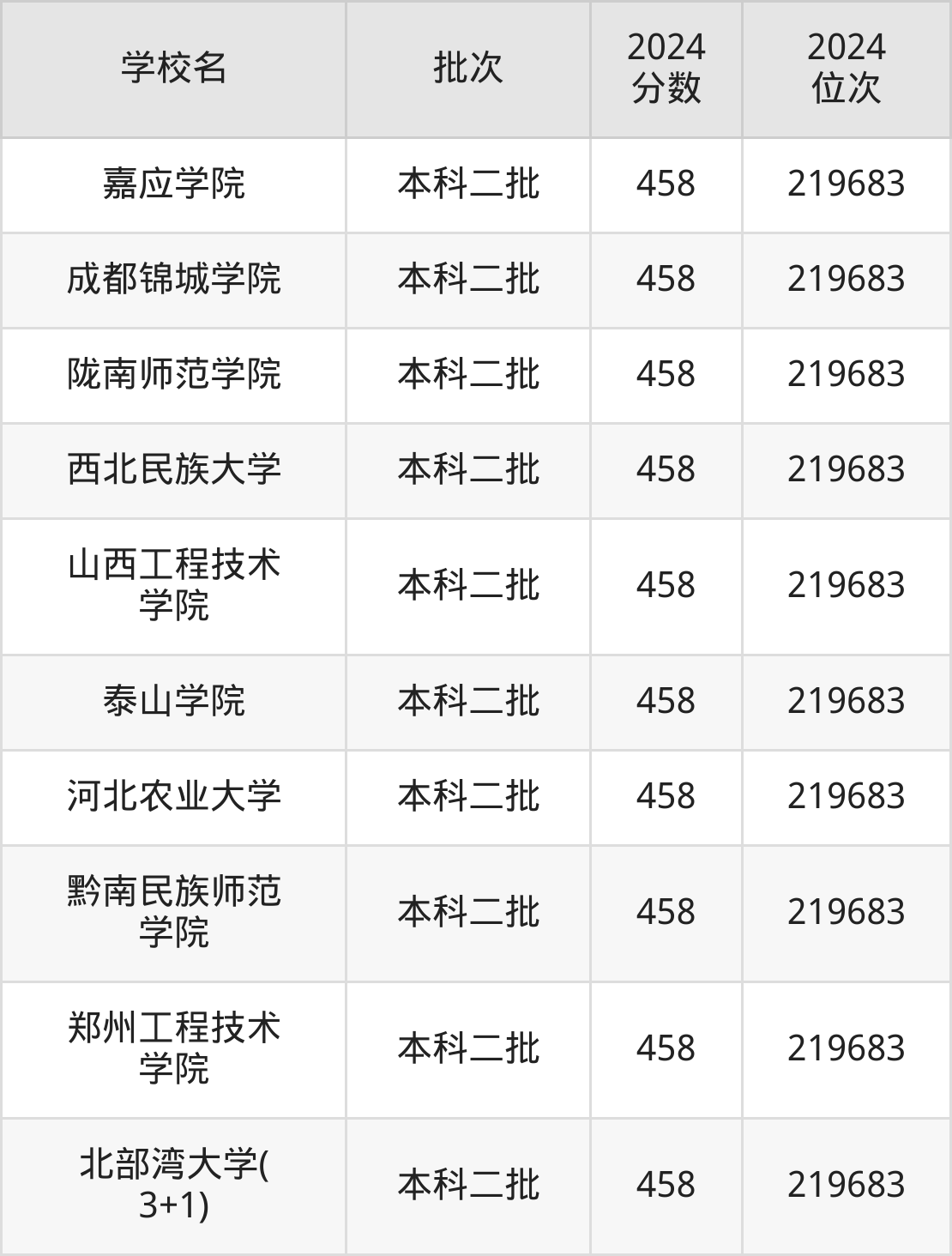 2024年河南高考理科458分(217965名~219683名)能上的大学有河北农业大学、吉林师范大学、西北民族大学、嘉应学院等。