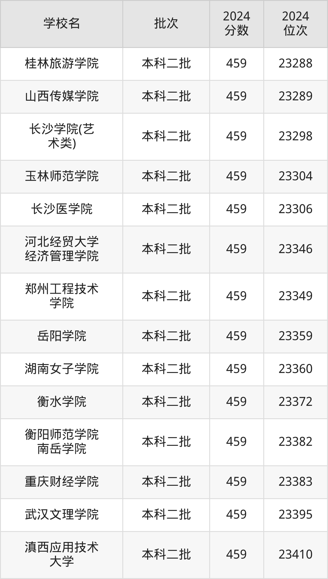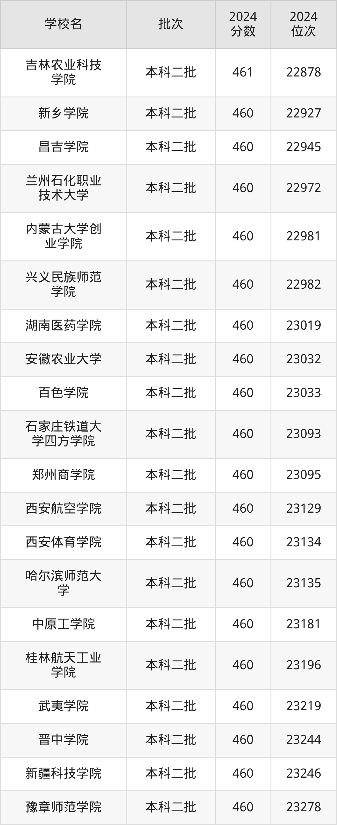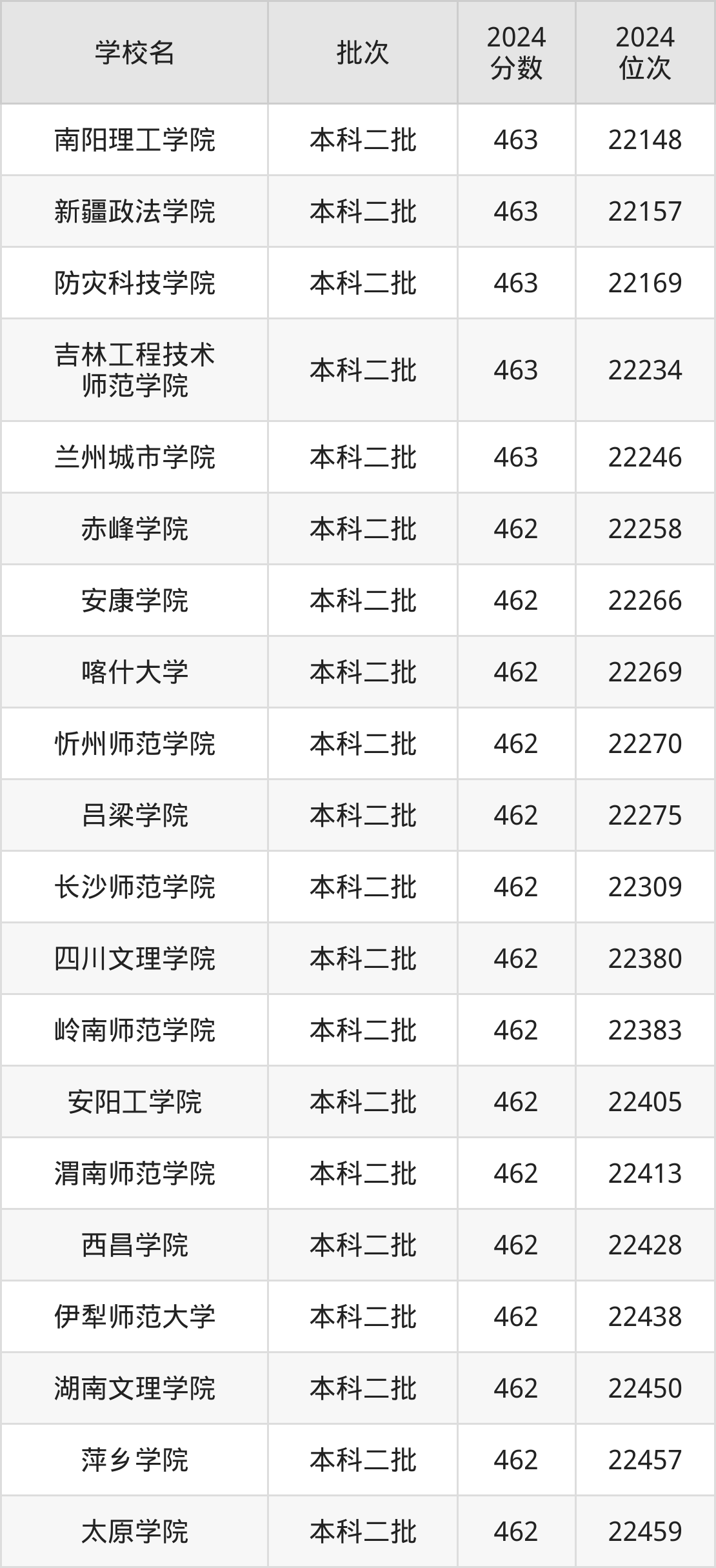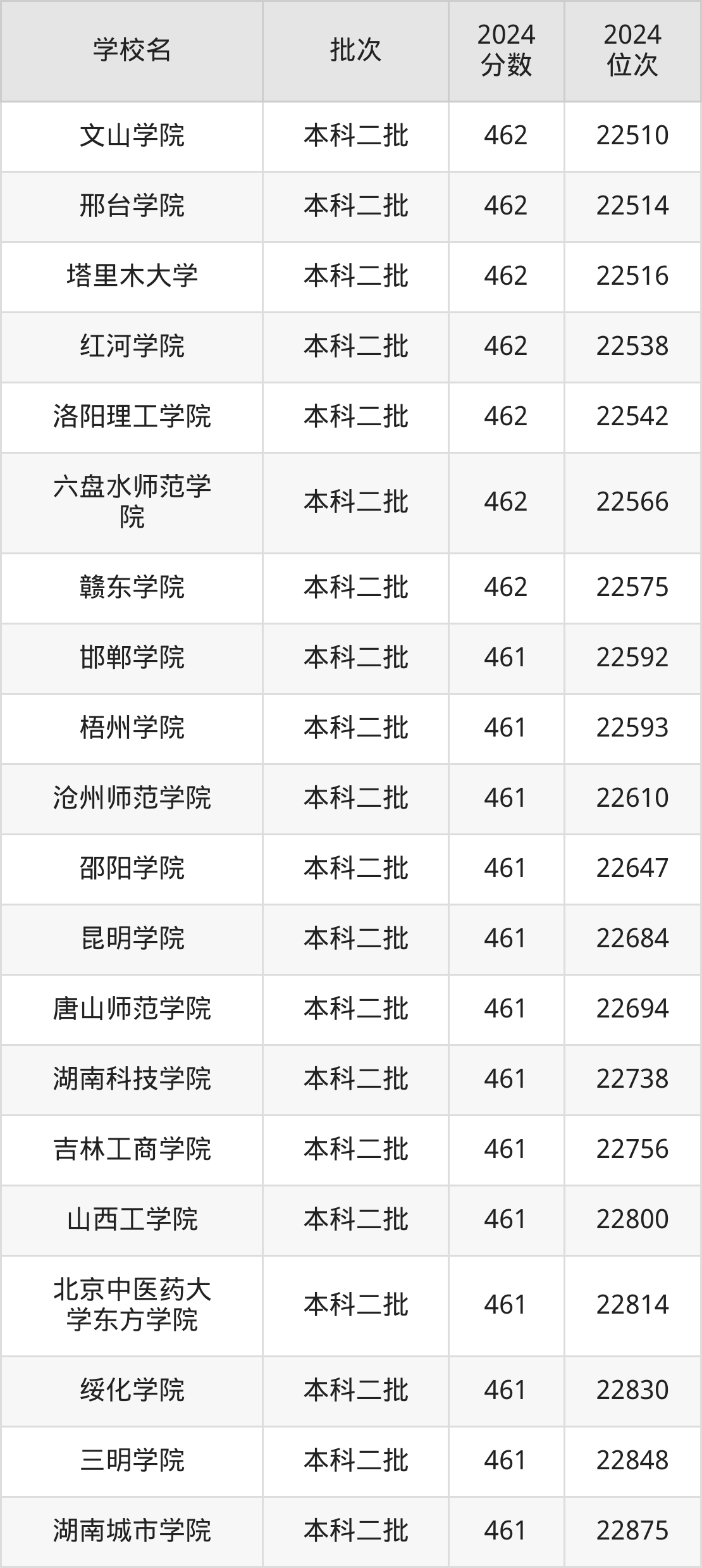这些都是2025年高考文科22582名~22911名考生可以报考的大学,更多学校名单如下表所示: