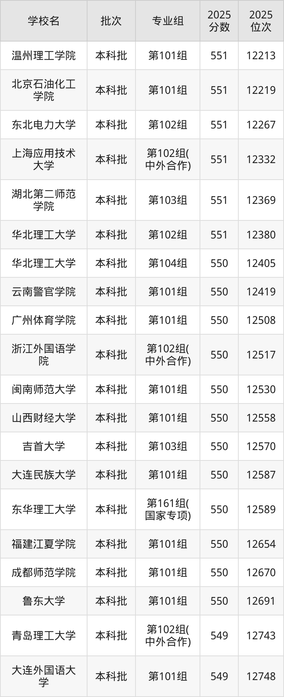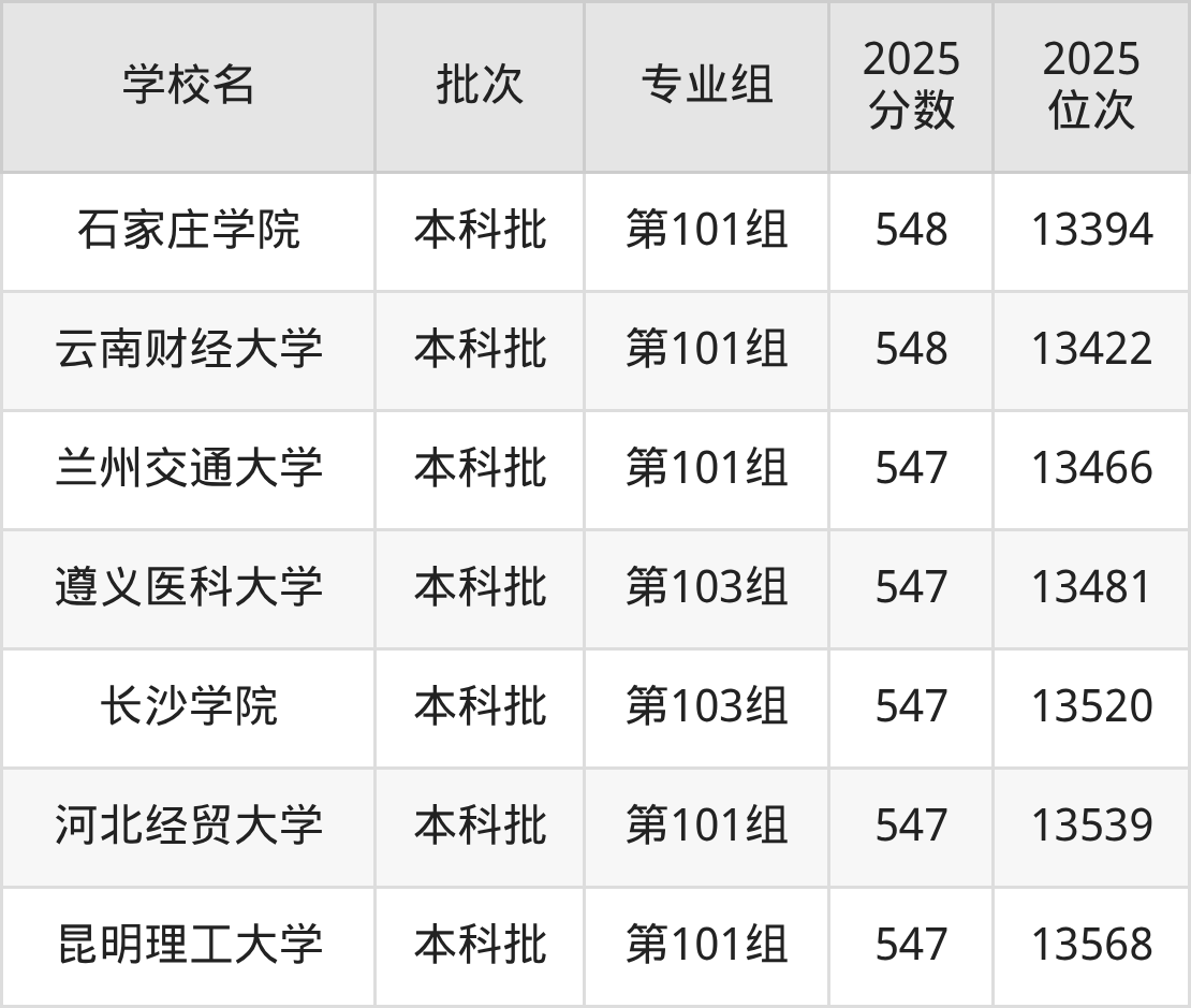 这些都是2026年高考历史类12709名~13070名考生可以报考的大学,更多学校名单如下表所示: