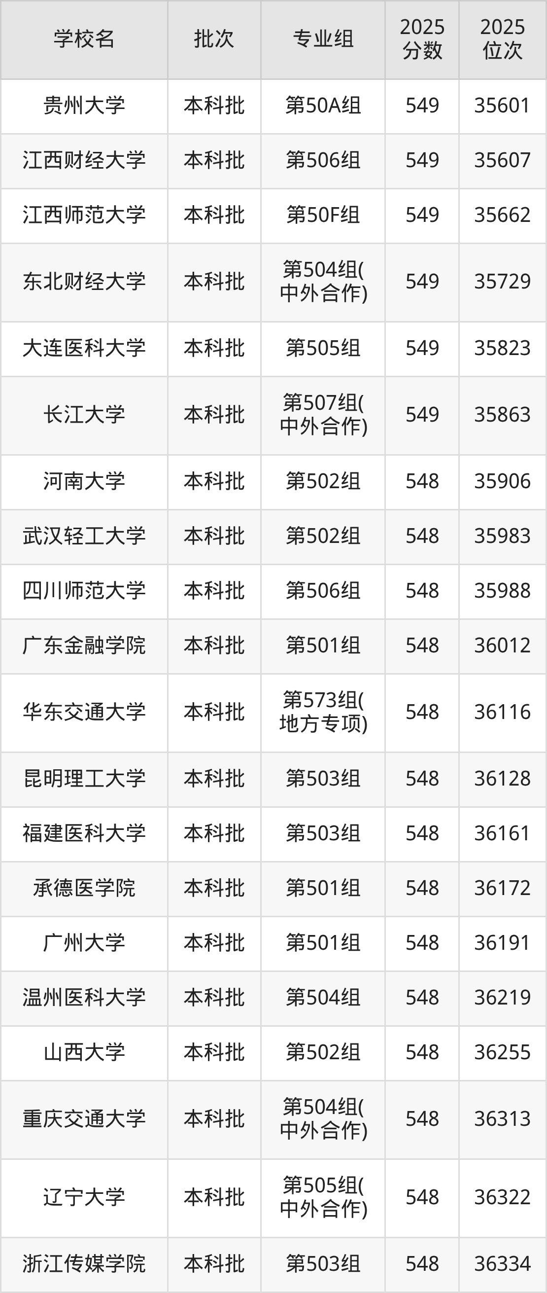 二、江西549分位次排名能上的大学