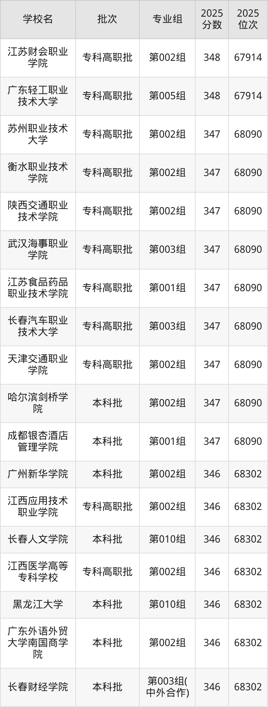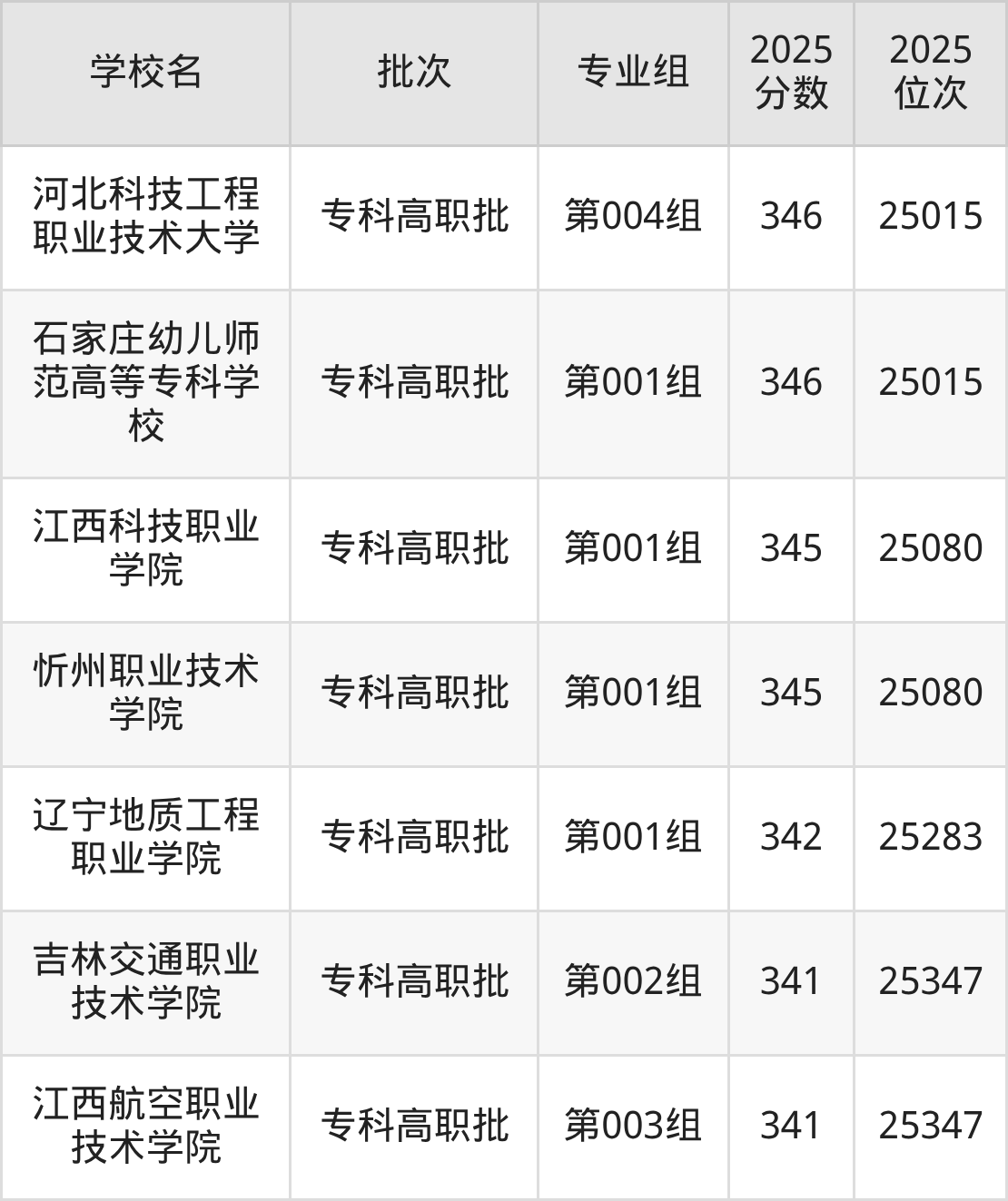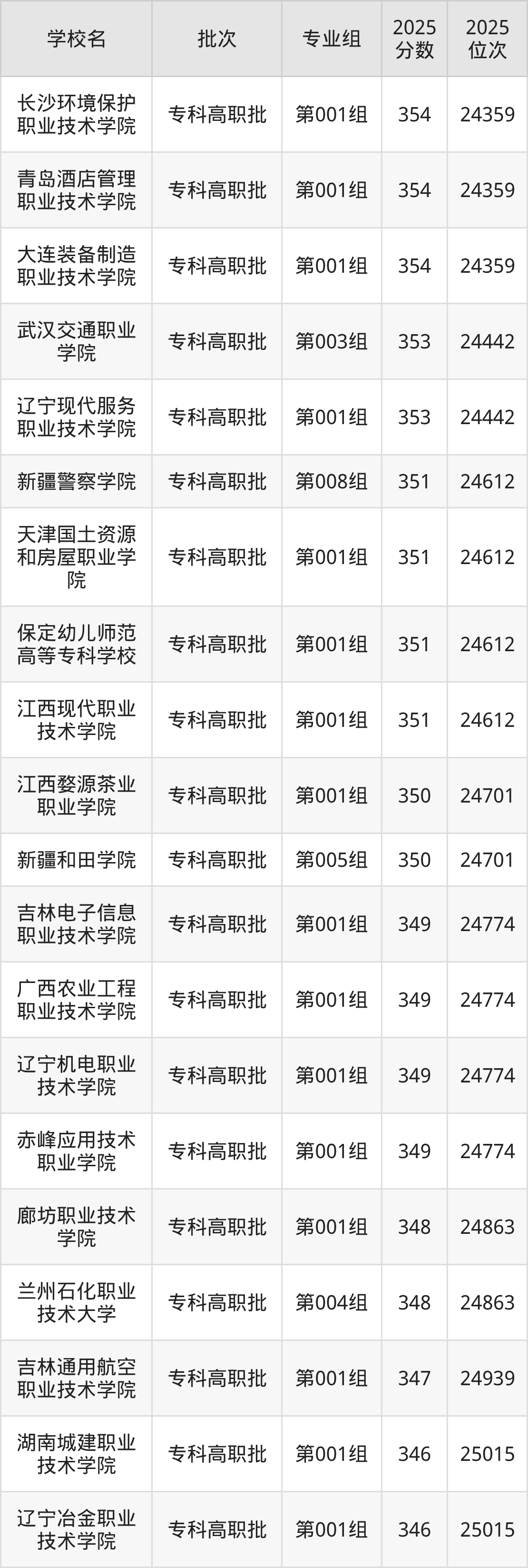 2025年吉林高考历史类348分(24775名~24863名)能上的大学有廊坊职业技术学院第001组、兰州石化职业技术大学第004组。