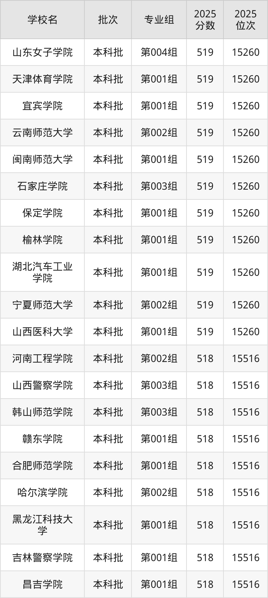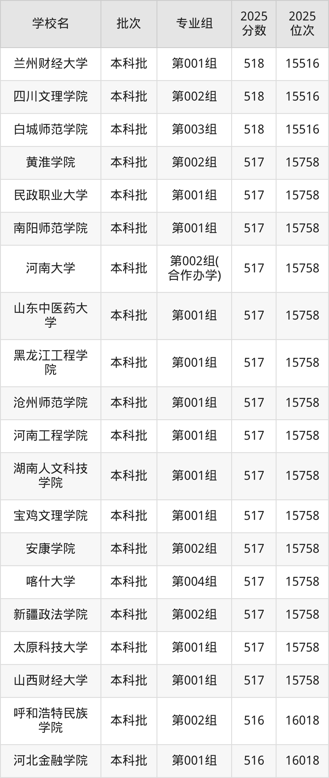 这些都是2026年高考历史类15517名~15758名考生可以报考的大学,更多学校名单如下表所示: