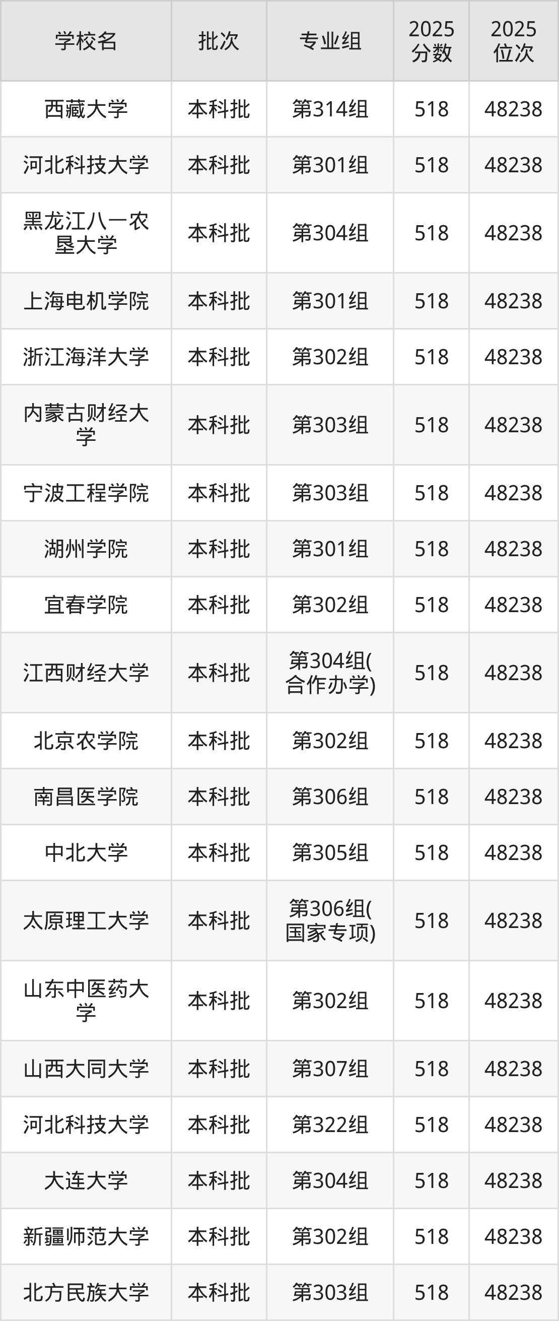 2025年山西高考历史类517分(15517名~15758名)能上的大学有民政职业大学第001组、沧州师范学院第001组、黑龙江工程学院第001组、山东中医药大学第001组等。