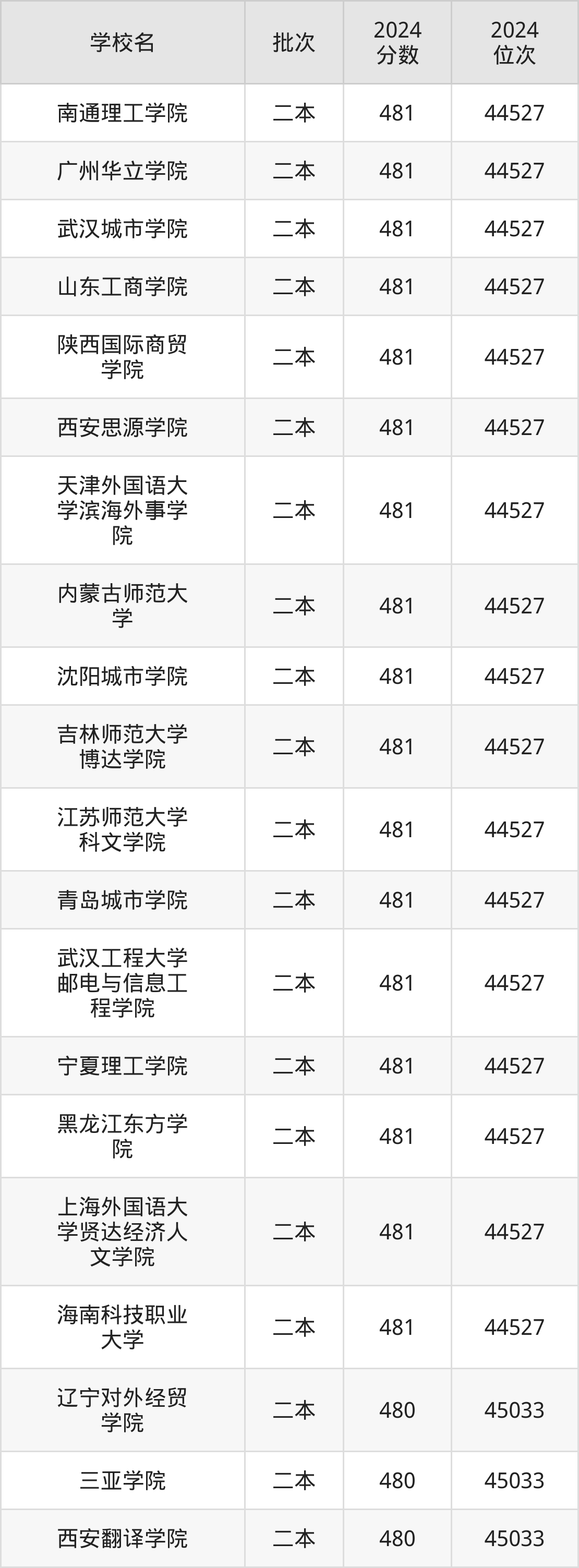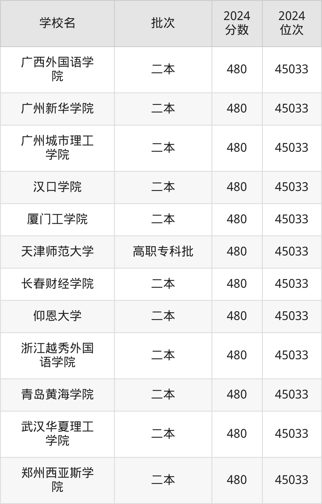 这些都是2025年高考文科44528名~45033名考生可以报考的大学,更多学校名单如下表所示: