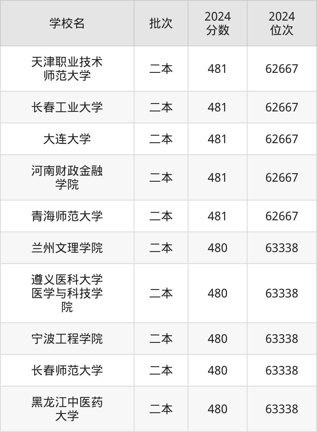 2024年云南高考理科480分(62668名~63338名)能上的大学有黑龙江中医药大学、遵义医科大学医学与科技学院、兰州文理学院、长春师范大学等。