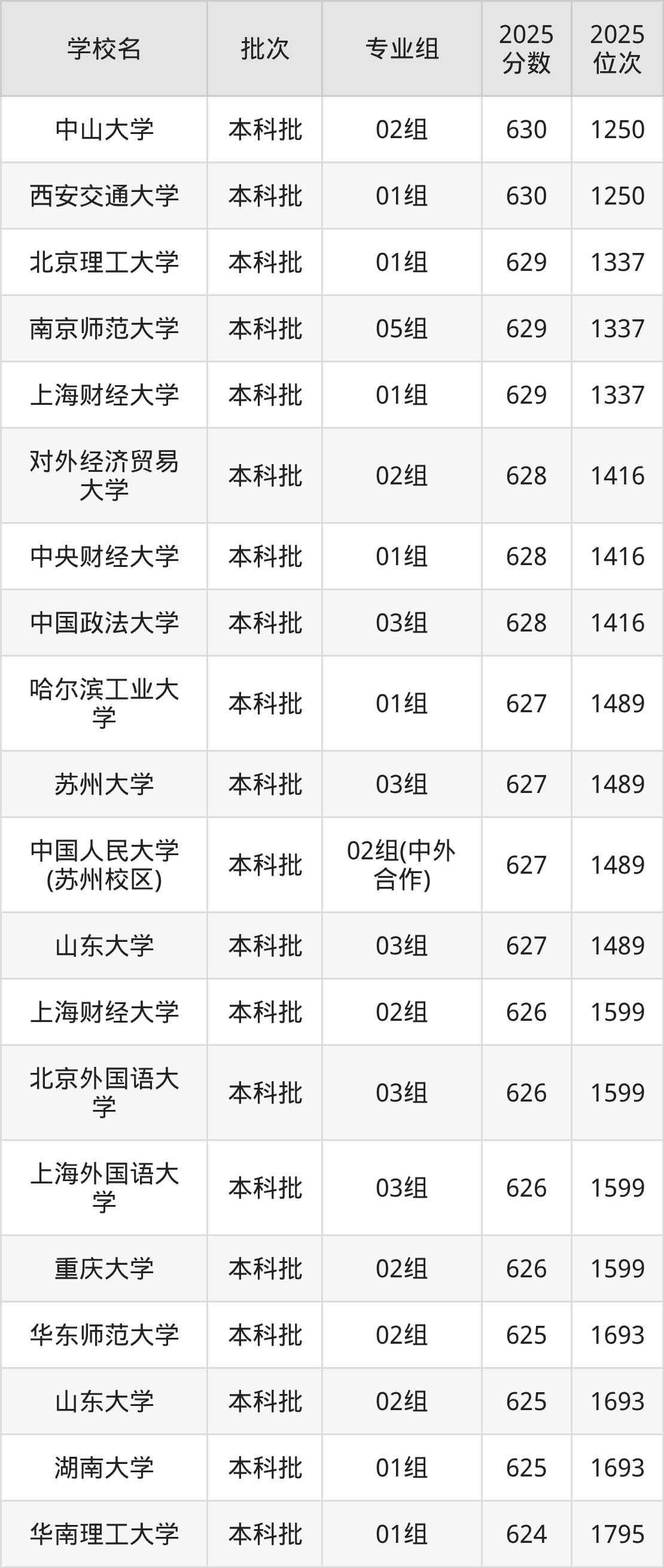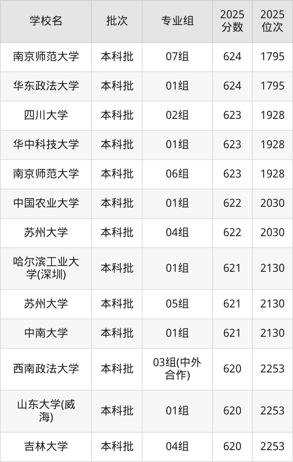 2025年江苏高考历史类624分(1694名~1795名)能上的大学有南京师范大学07组、华东政法大学01组、华南理工大学01组。