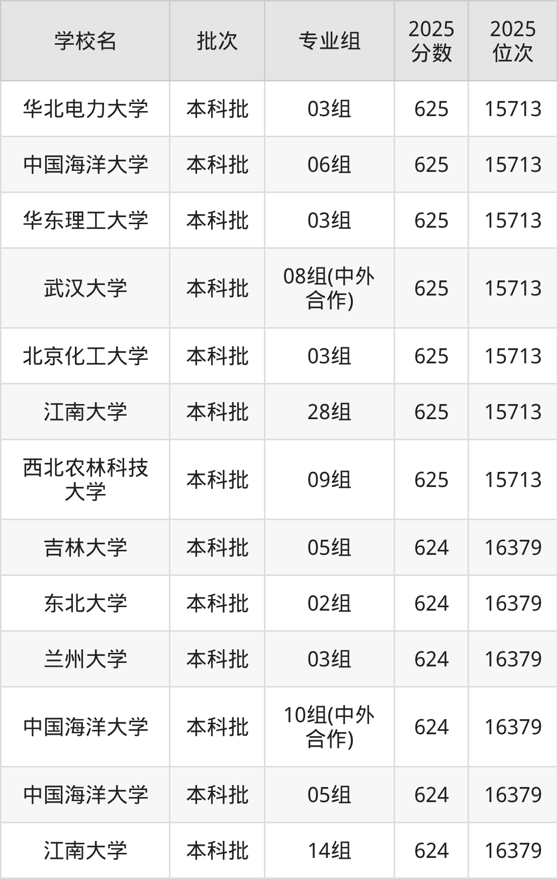2025年江苏高考物理类624分(15714名~16379名)能上的大学有江南大学14组、中国海洋大学05组、中国海洋大学10组(中外合作)、东北大学02组等。