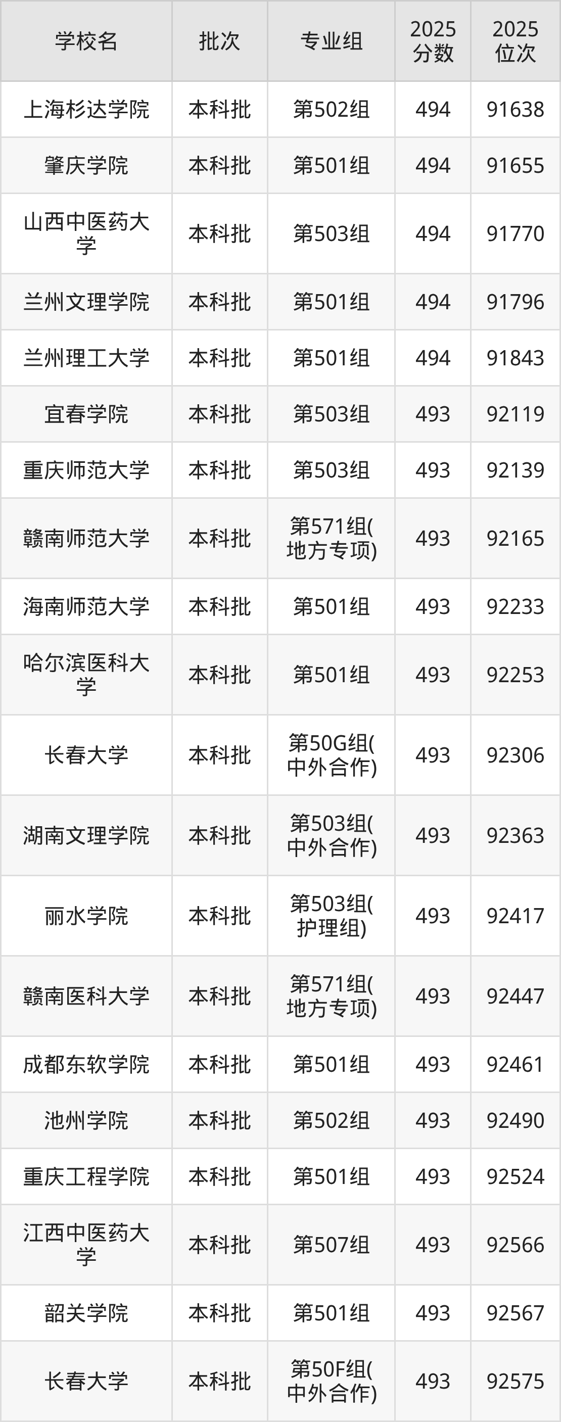 二、江西493分位次排名能上的大学