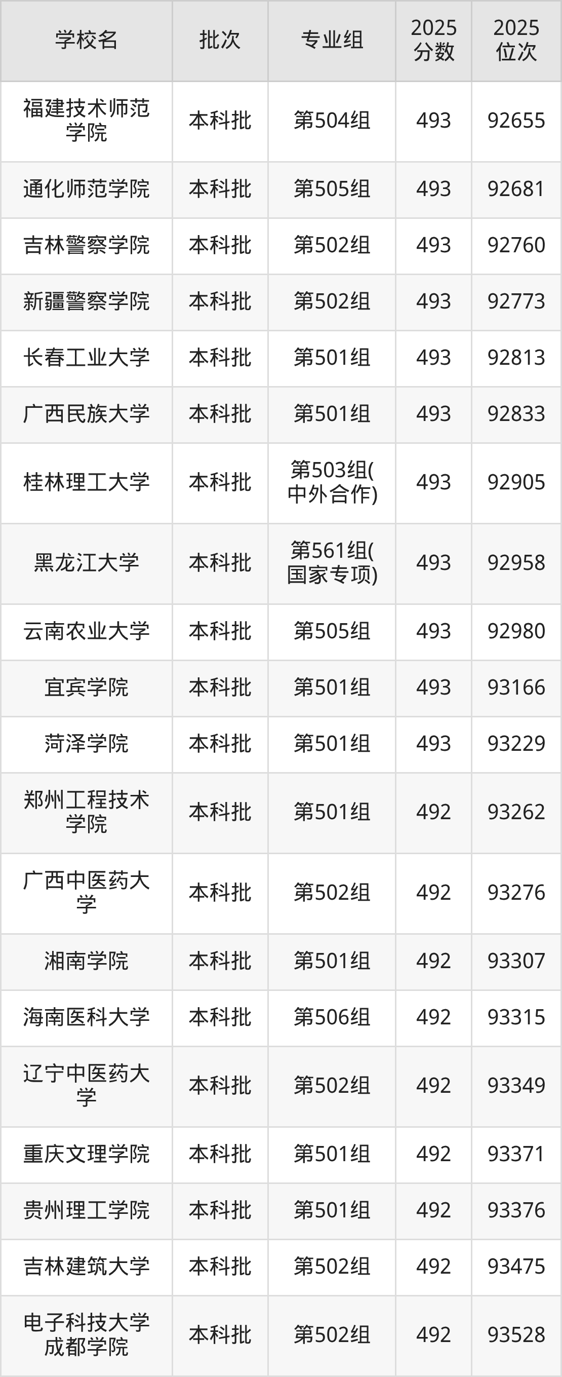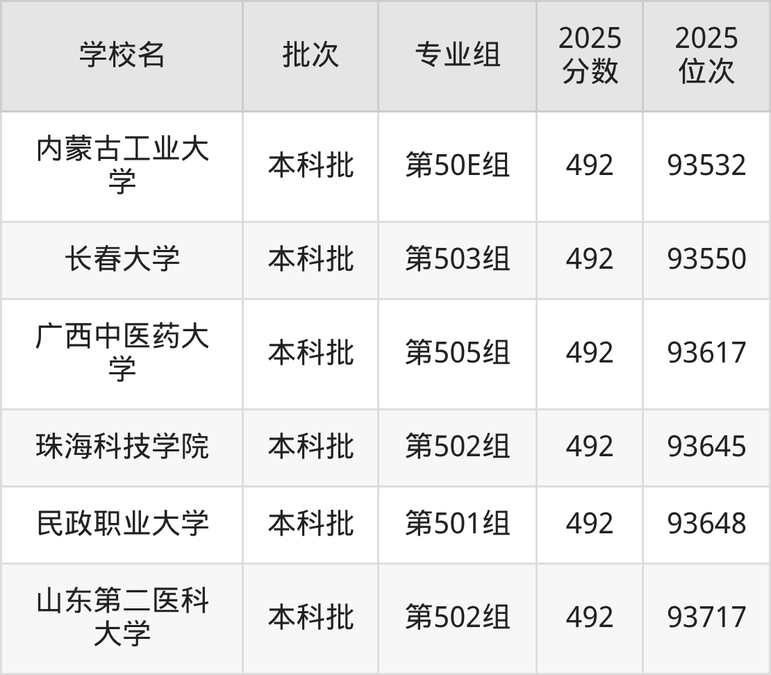 2025年江西高考物理类493分(92003名~93255名)能上的大学有海南师范大学第501组、重庆师范大学第503组、哈尔滨医科大学第501组、吉林警察学院第502组等。