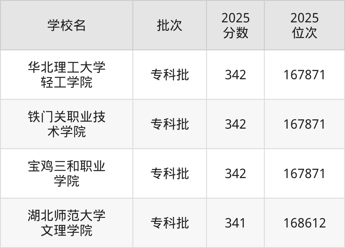 这些都是2026年高考历史类167872名~168612名考生可以报考的大学,更多学校名单如下表所示: