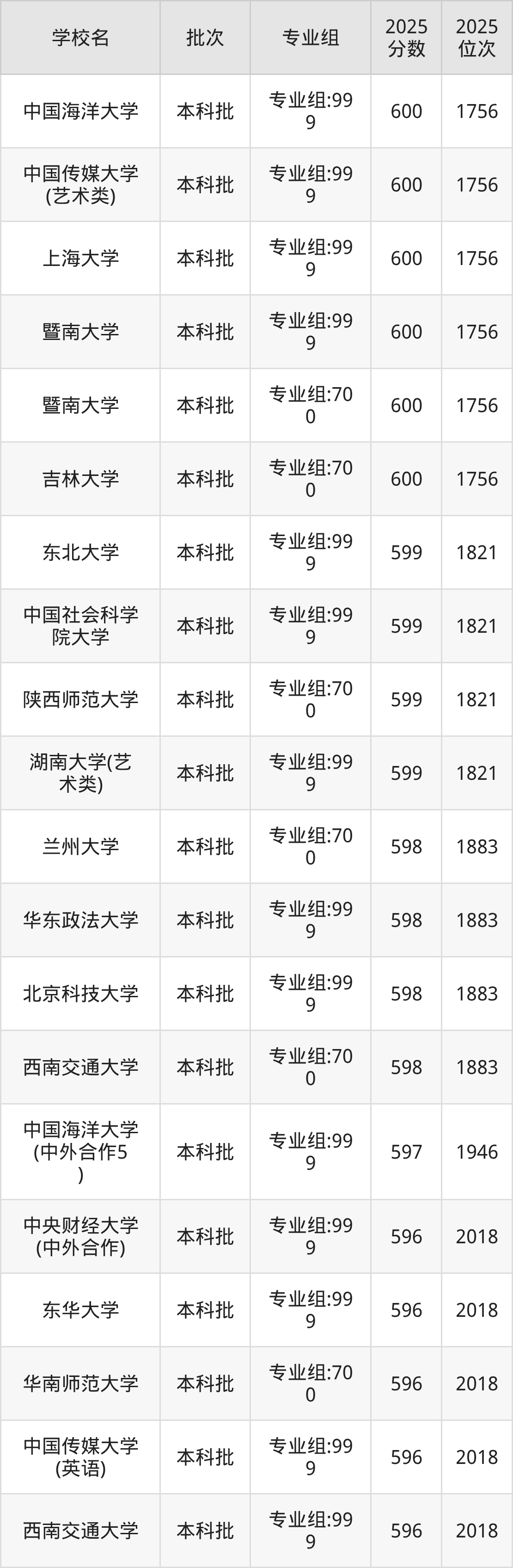 由于高考录取分数线历年波动较大,因此本文以该分数对应的位次排名为大家整理能上的大学名单。