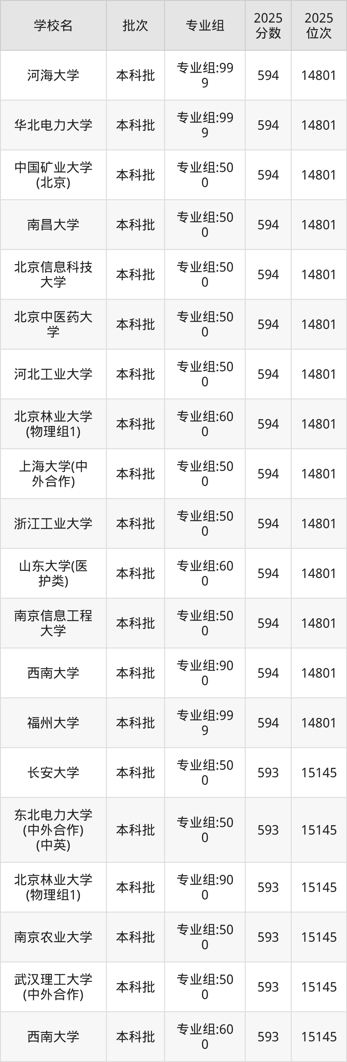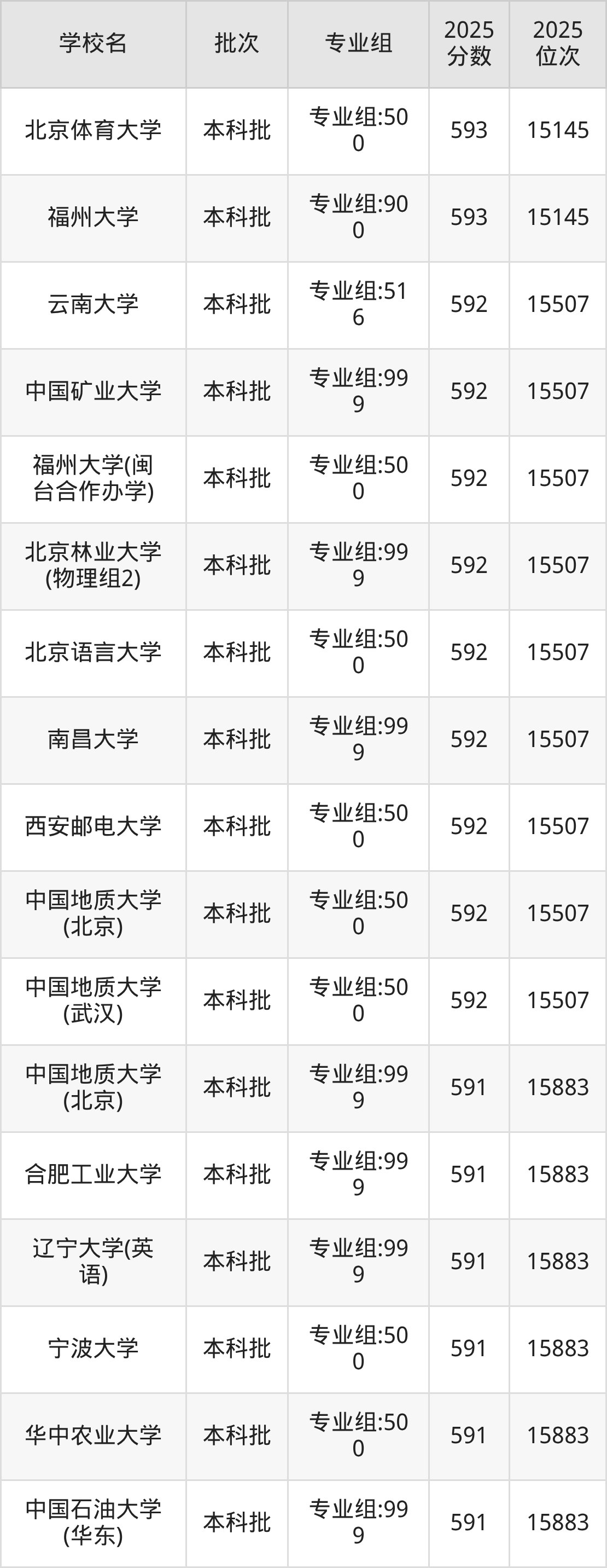 这些都是2026年高考物理类15146名~15507名考生可以报考的大学,更多学校名单如下表所示: