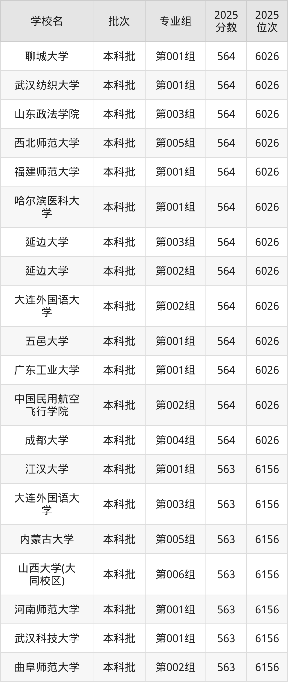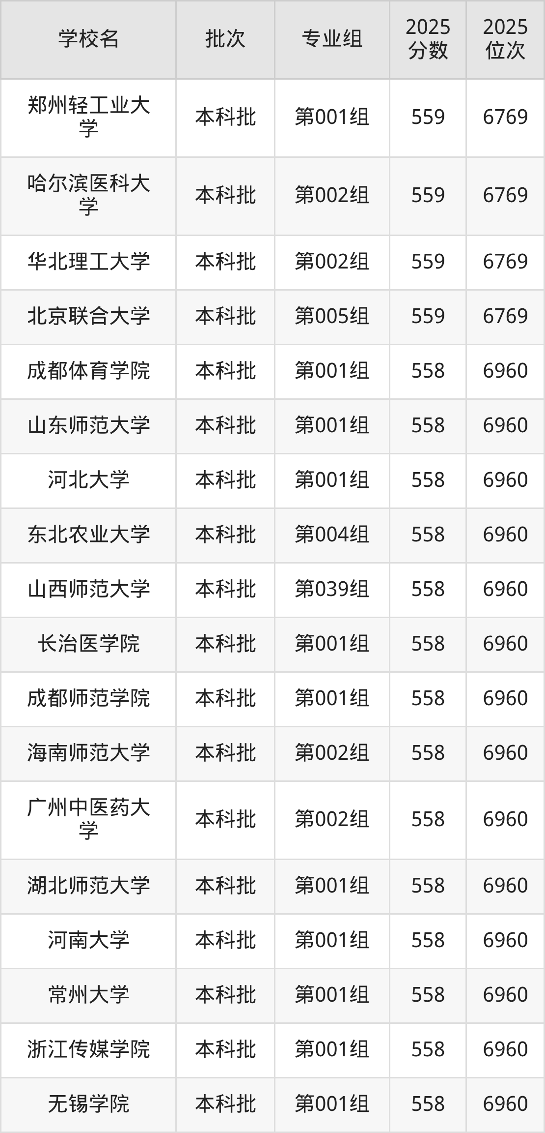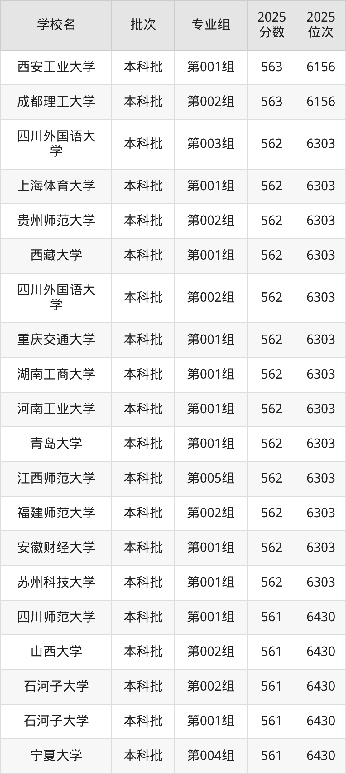 这些都是2026年高考历史类6431名~6593名考生可以报考的大学,更多学校名单如下表所示: