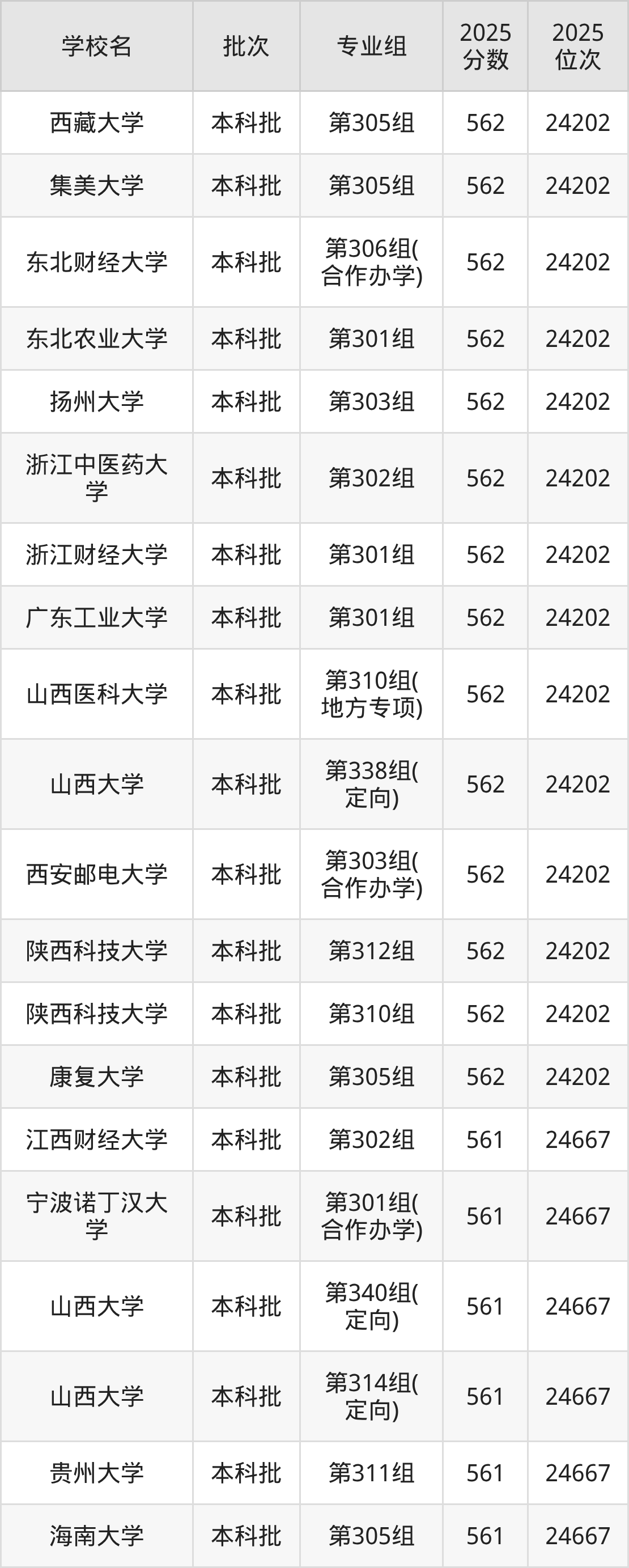 山西高考560分:历史类排名6593位、物理类排名25129位。该分数位次对应能上的大学历史类有天津科技大学第001组、河北师范大学第002组;物理类有外交学院第304组(国家专项)、天津财经大学第302组,更多名单如下文所示,2026届考生可参考。