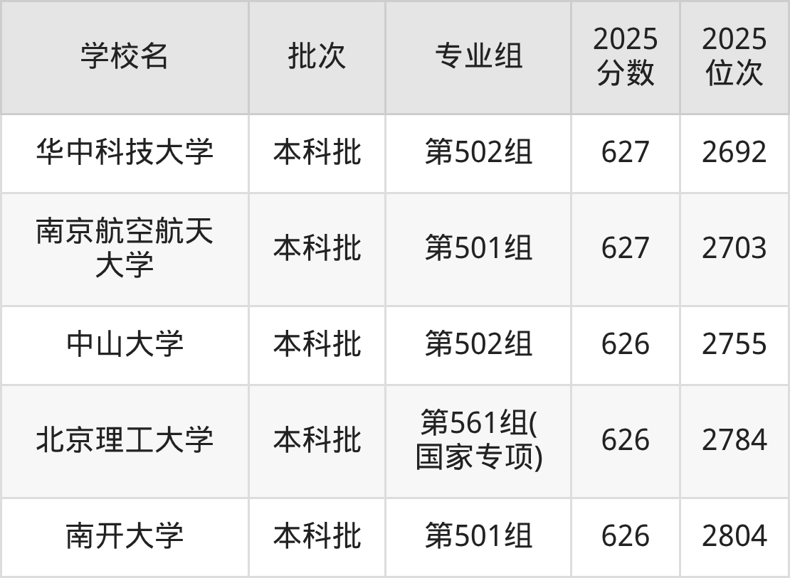 另外录取位次低于该区间(较稳妥)的有哈尔滨工业大学(威海)第501组(2371名)、同济大学第504组(中外合作)(2404名)等;录取位次高于该区间(可冲)的有武汉大学第503组(2148名)、天津医科大学第502组(2065名)等。