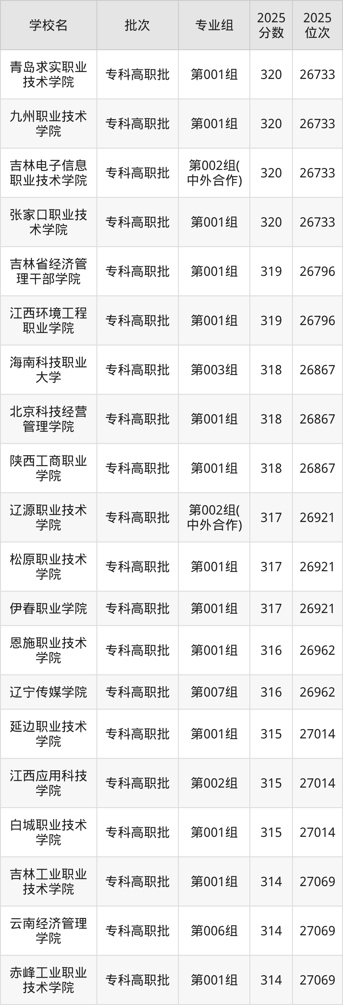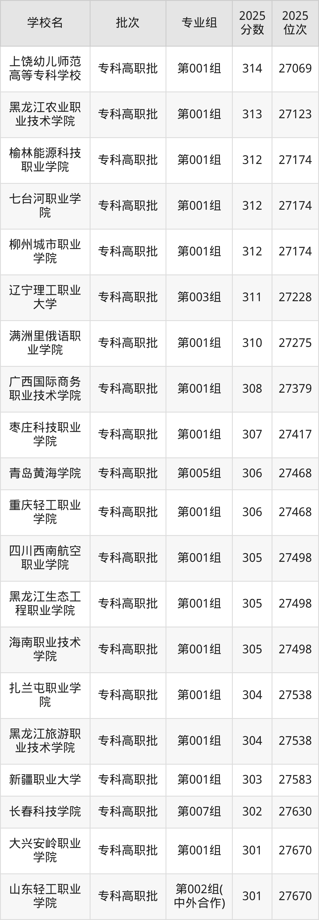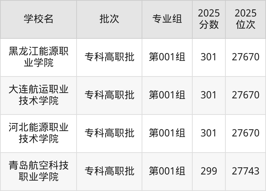 2025年吉林高考历史类310分(27229名~27275名)能上的大学有满洲里俄语职业学院第001组。