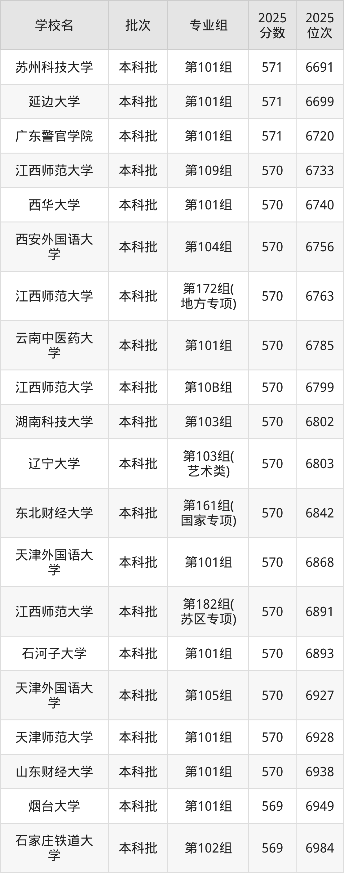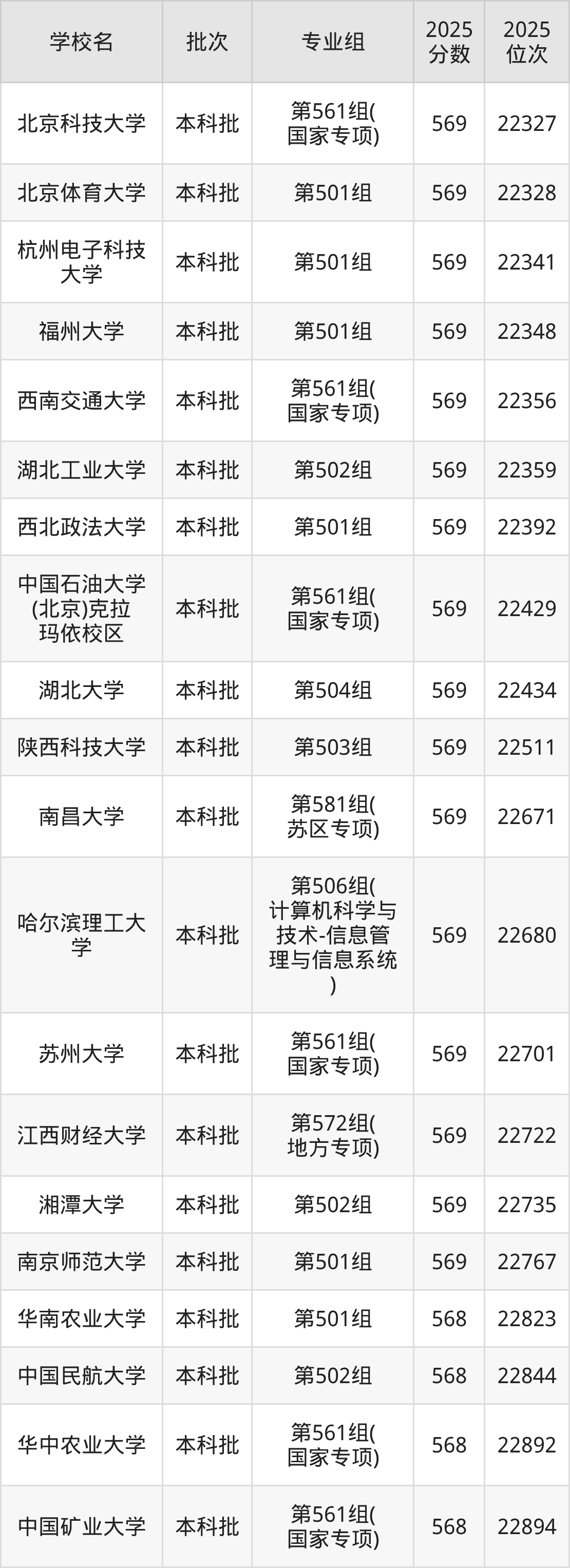 这些都是2026年高考历史类7189名~7427名考生可以报考的大学,更多学校名单如下表所示:
