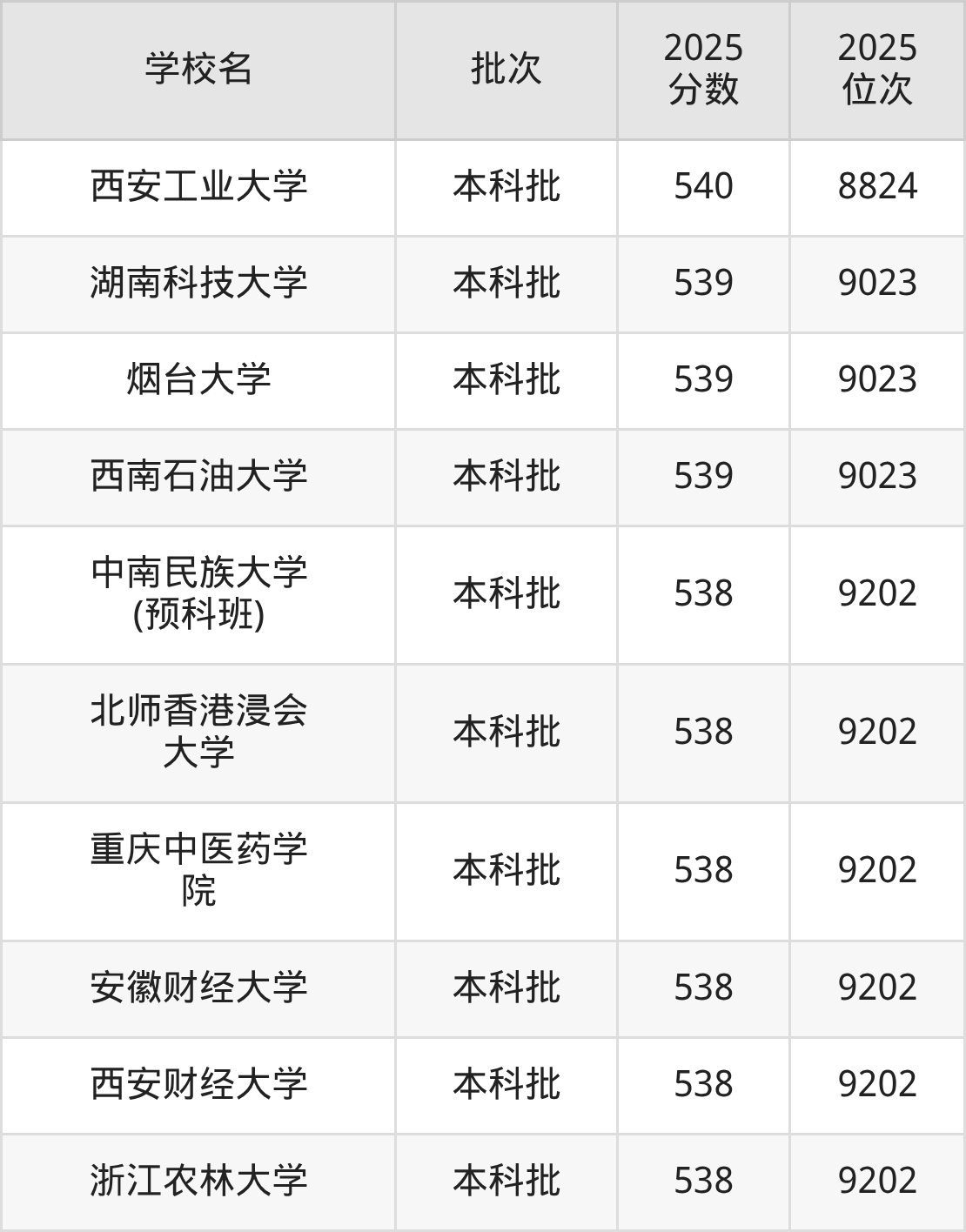 这些都是2026年高考历史类8641名~8824名考生可以报考的大学,更多学校名单如下表所示: