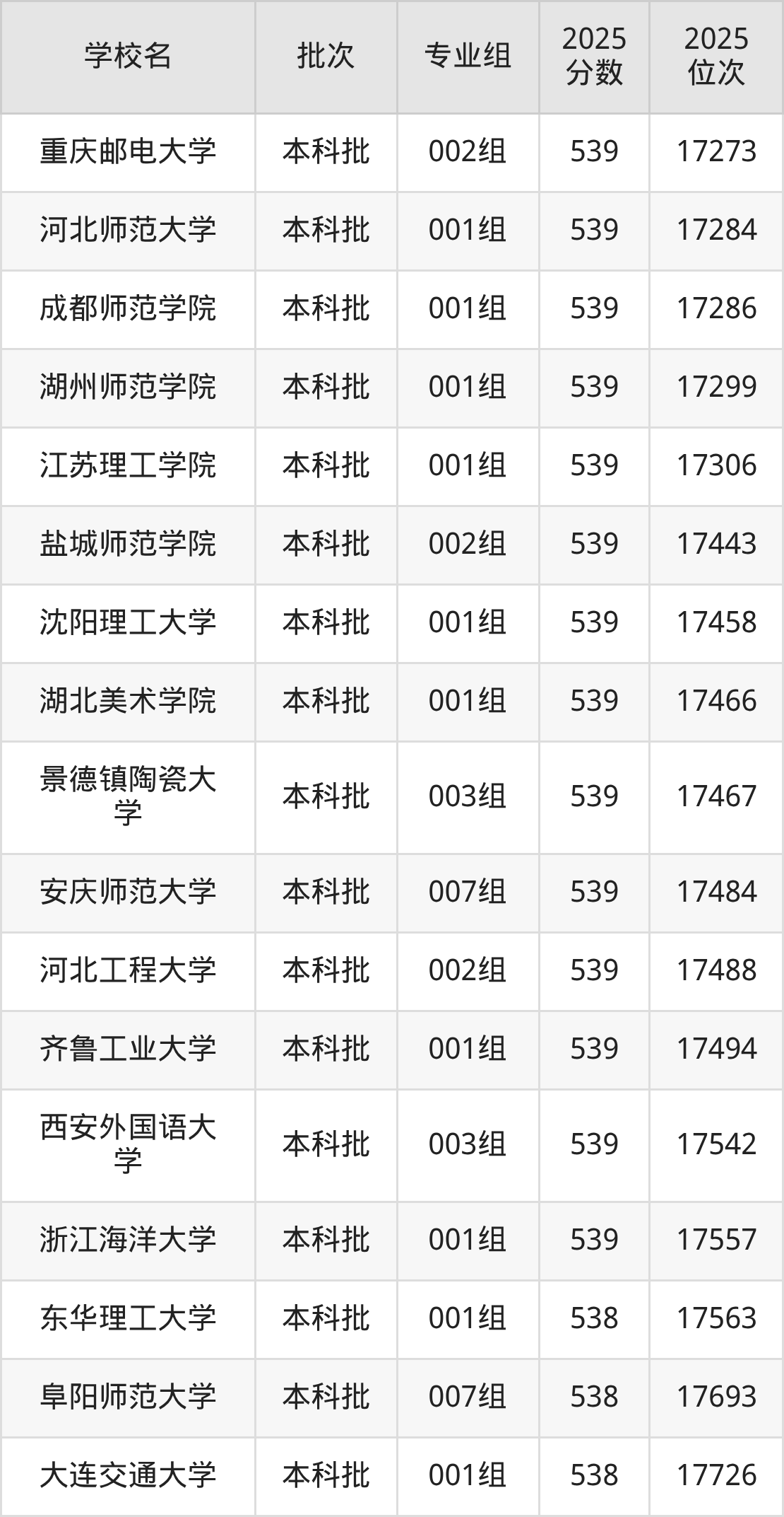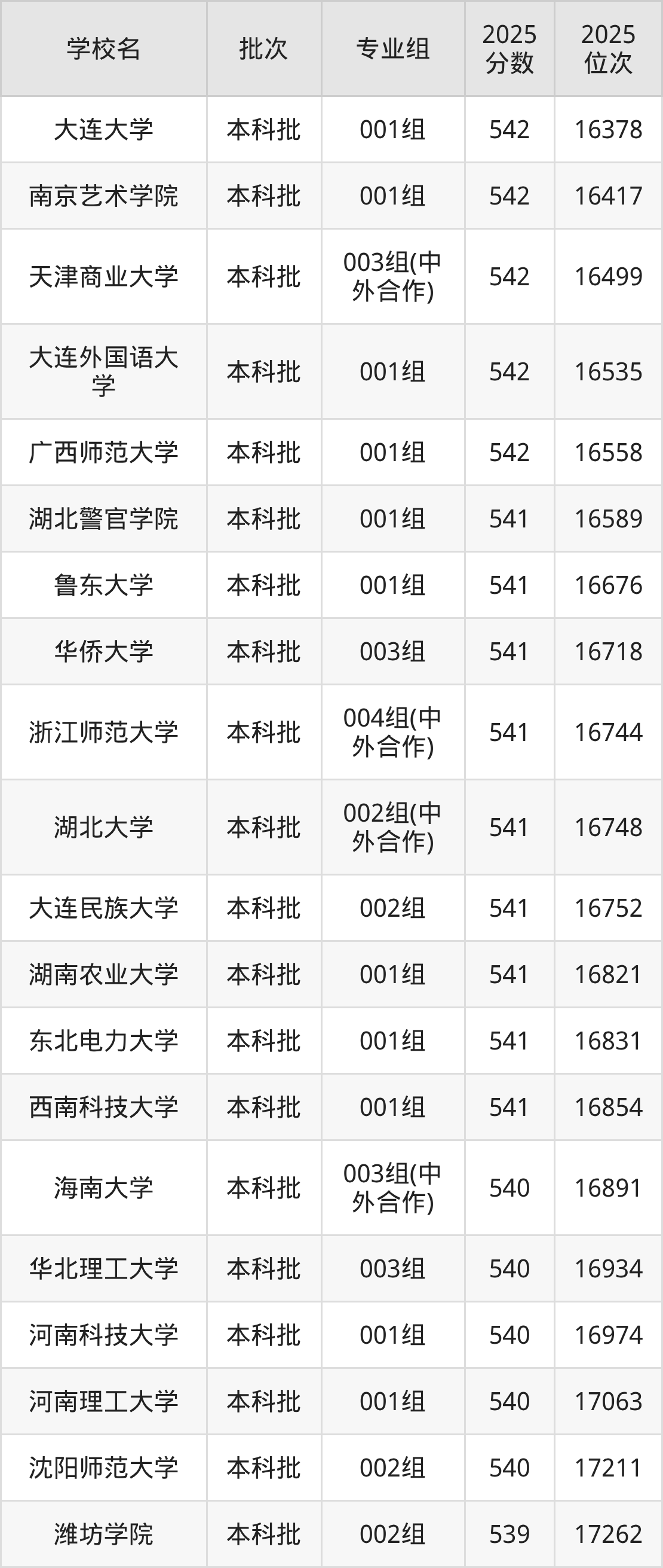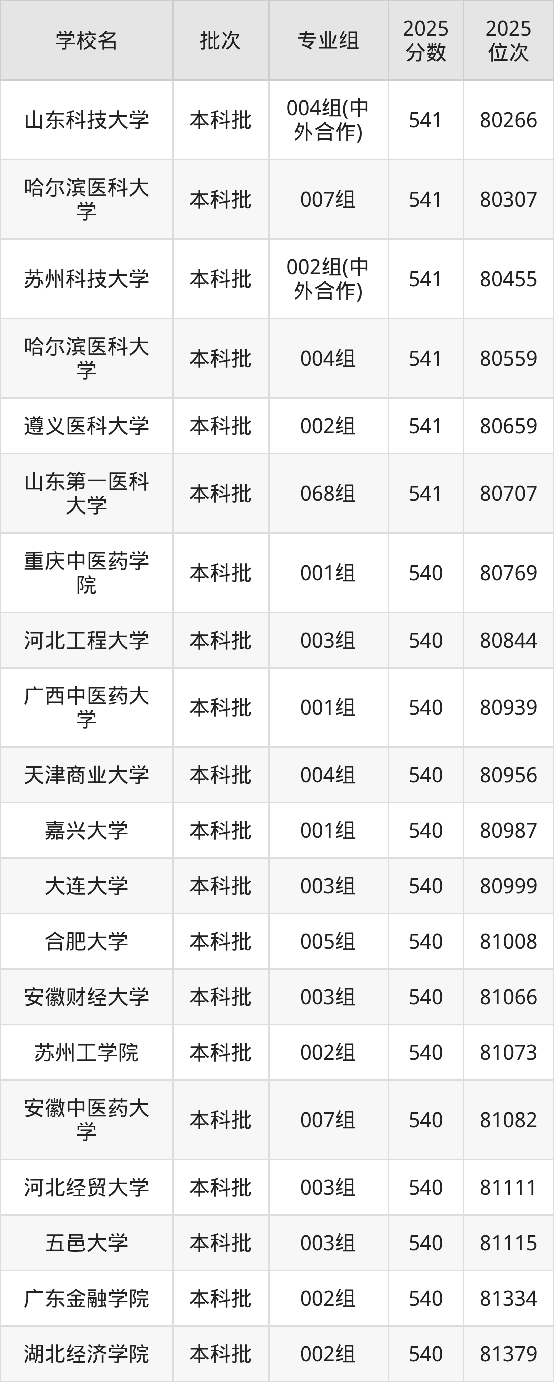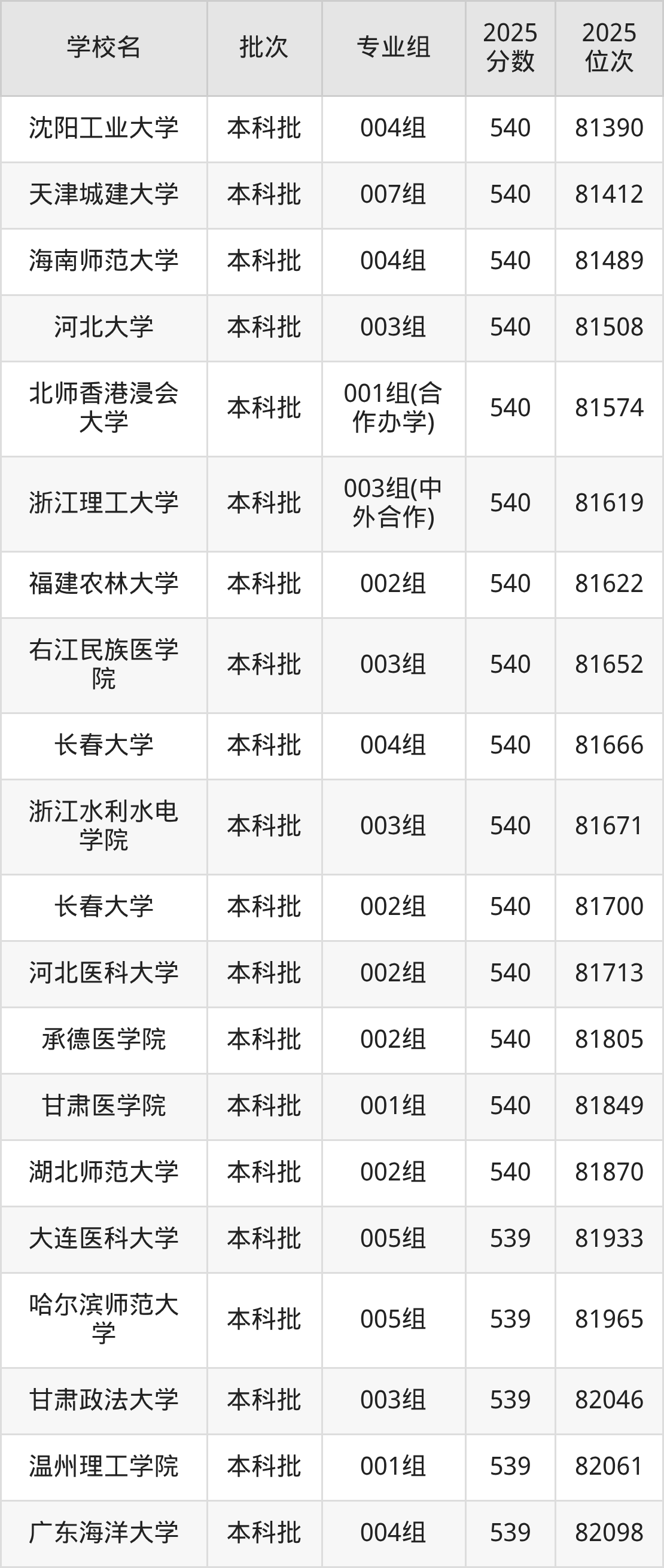 2025年安徽高考物理类540分(80752名~81872名)能上的大学有北师香港浸会大学001组(合作办学)、长春大学002组、长春大学004组、承德医学院002组等。