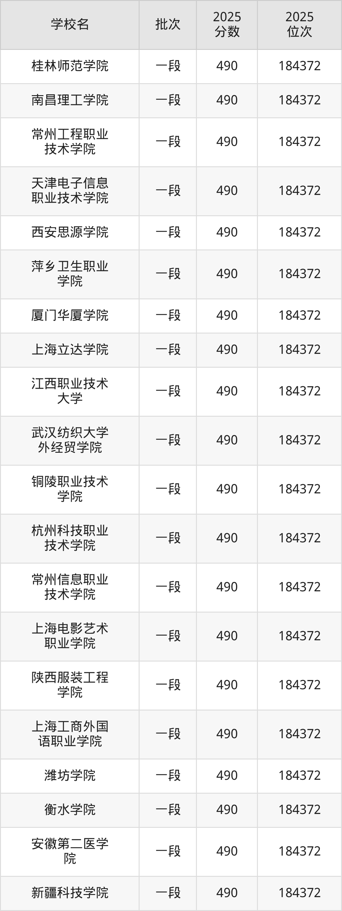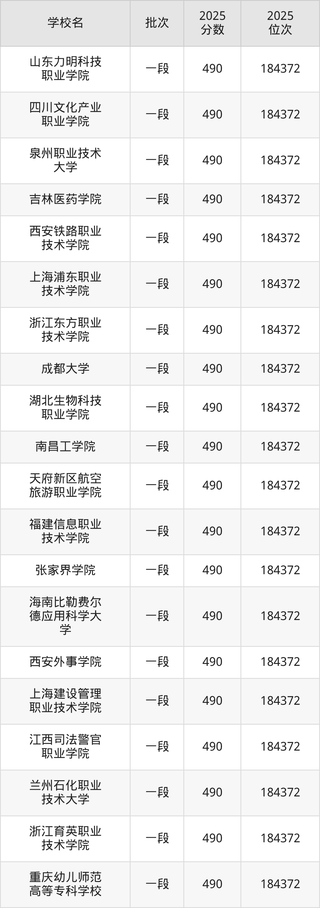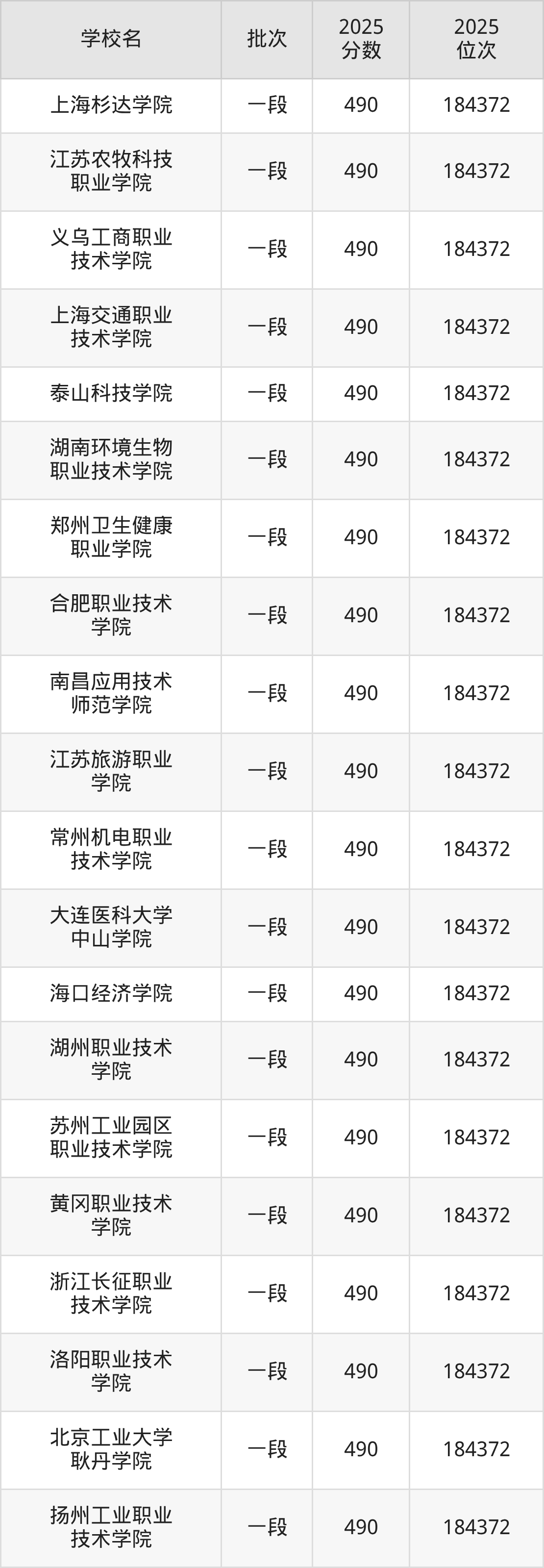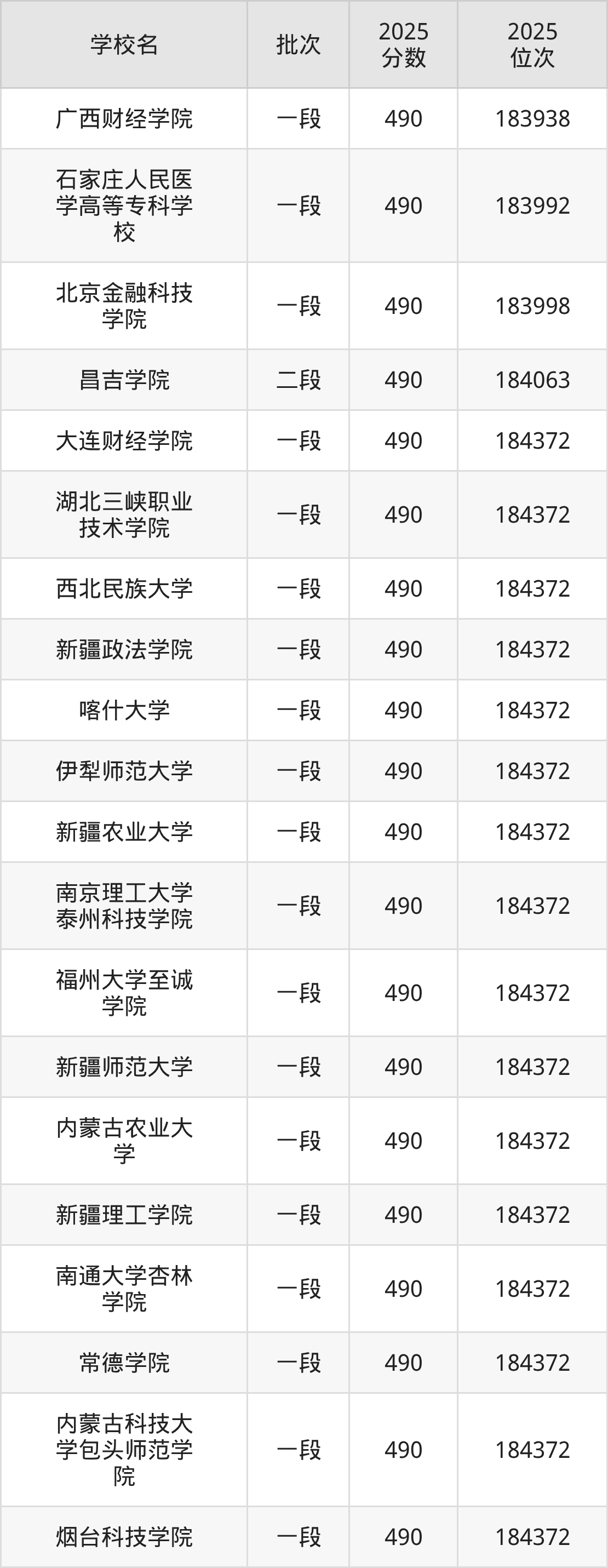 这些都是2026年高考184373名~185464名考生可以报考的大学,更多学校名单如下表所示: