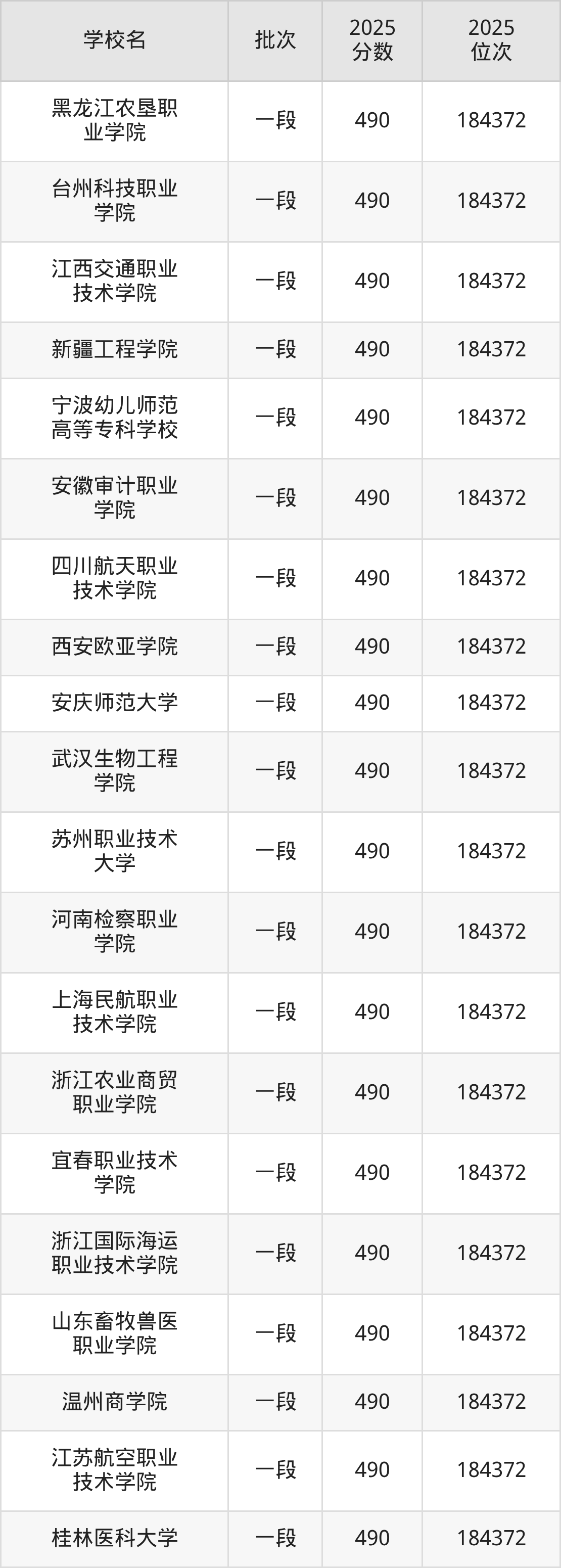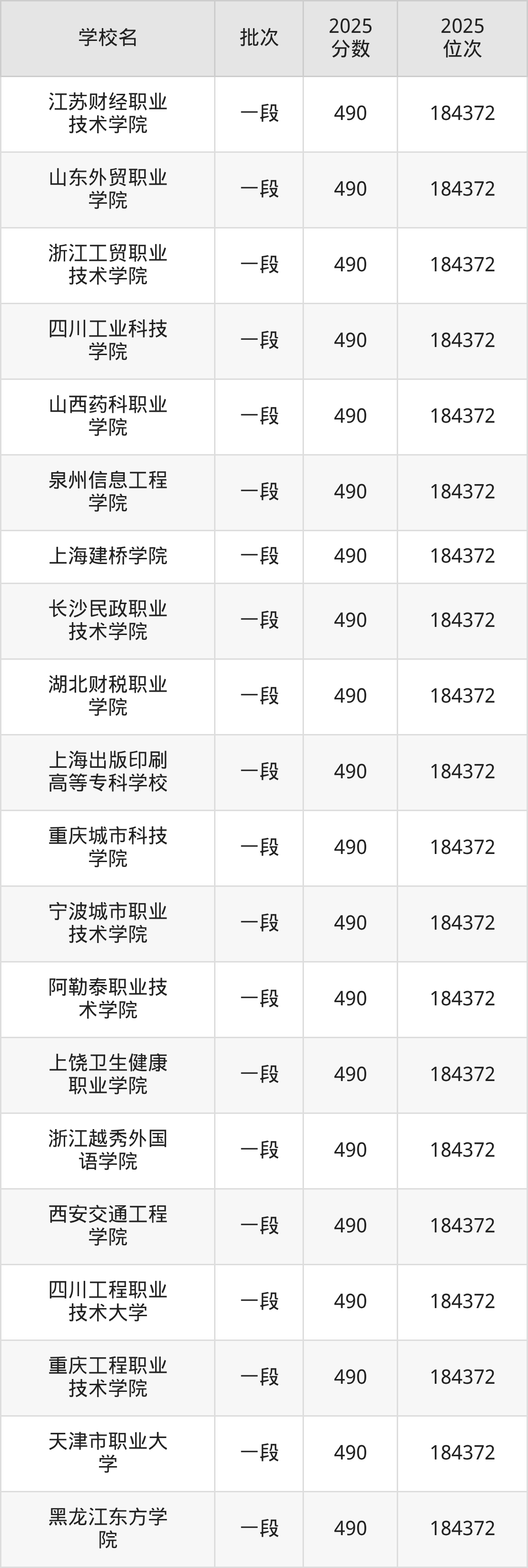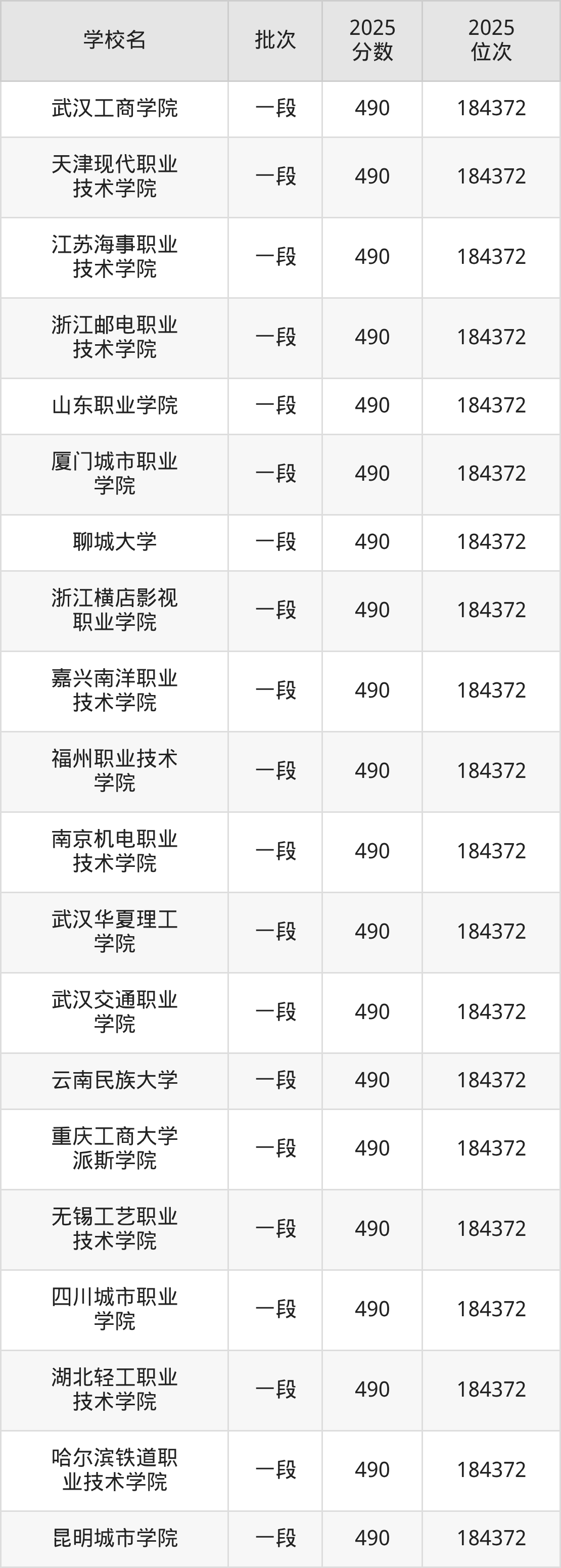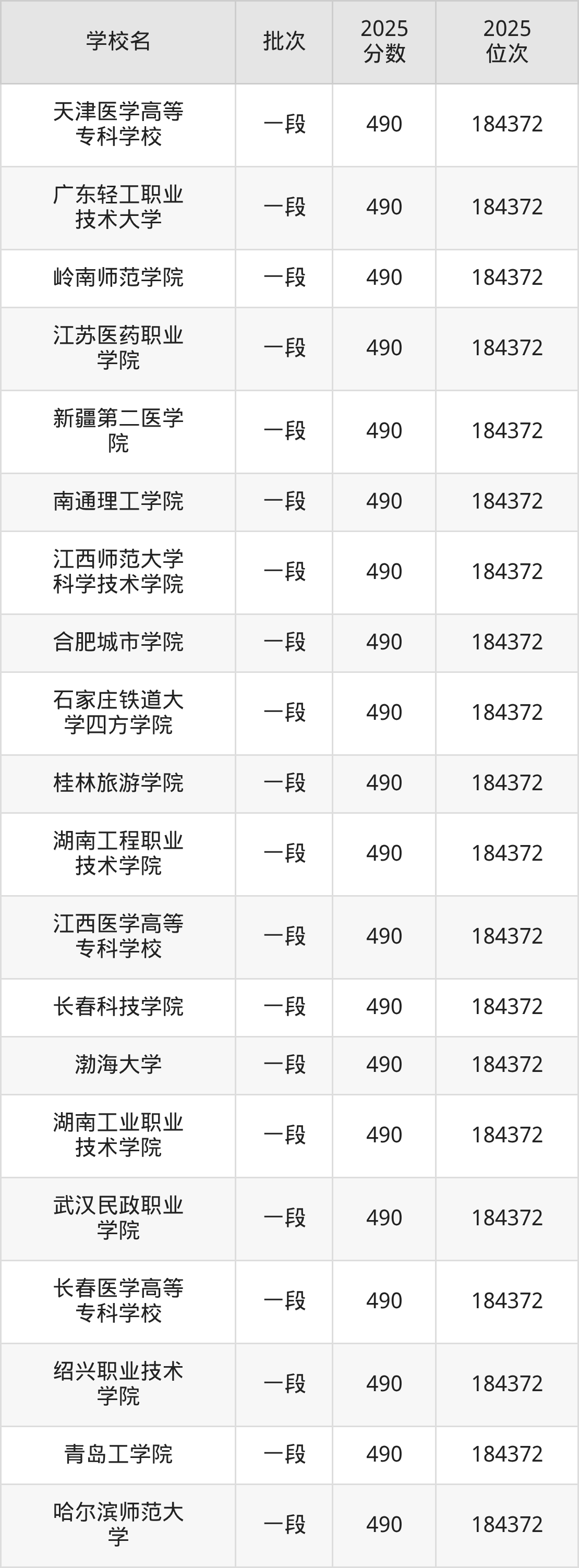 这些都是2026年高考184373名~185464名考生可以报考的大学,更多学校名单如下表所示: